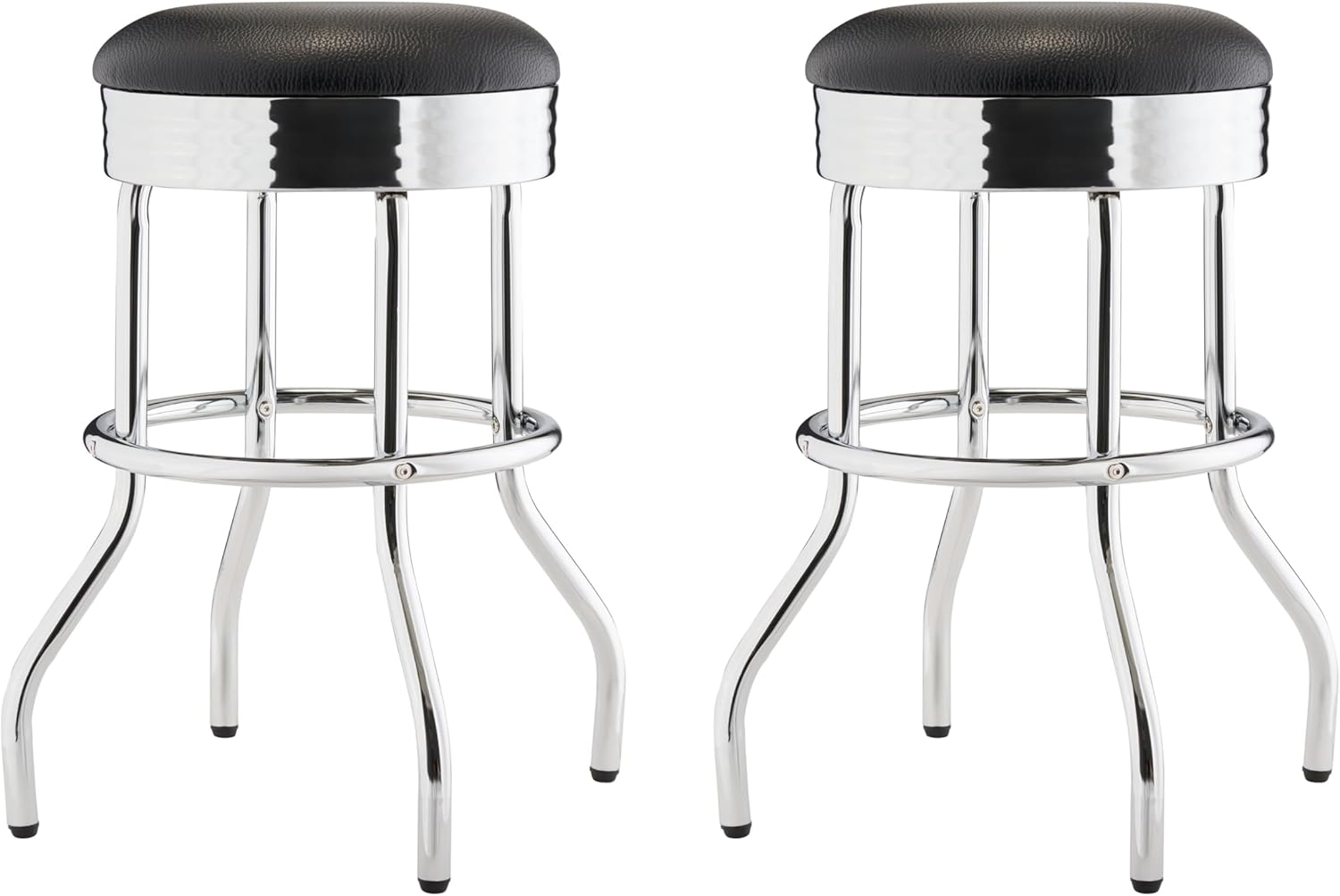 TRINITY Heavy Duty 25-Inch Backless Swivel Bar Stool for Kitchen, Garage, or Workshop, Chrome Finish with Faux Leather Seat, 2 Pack, Black