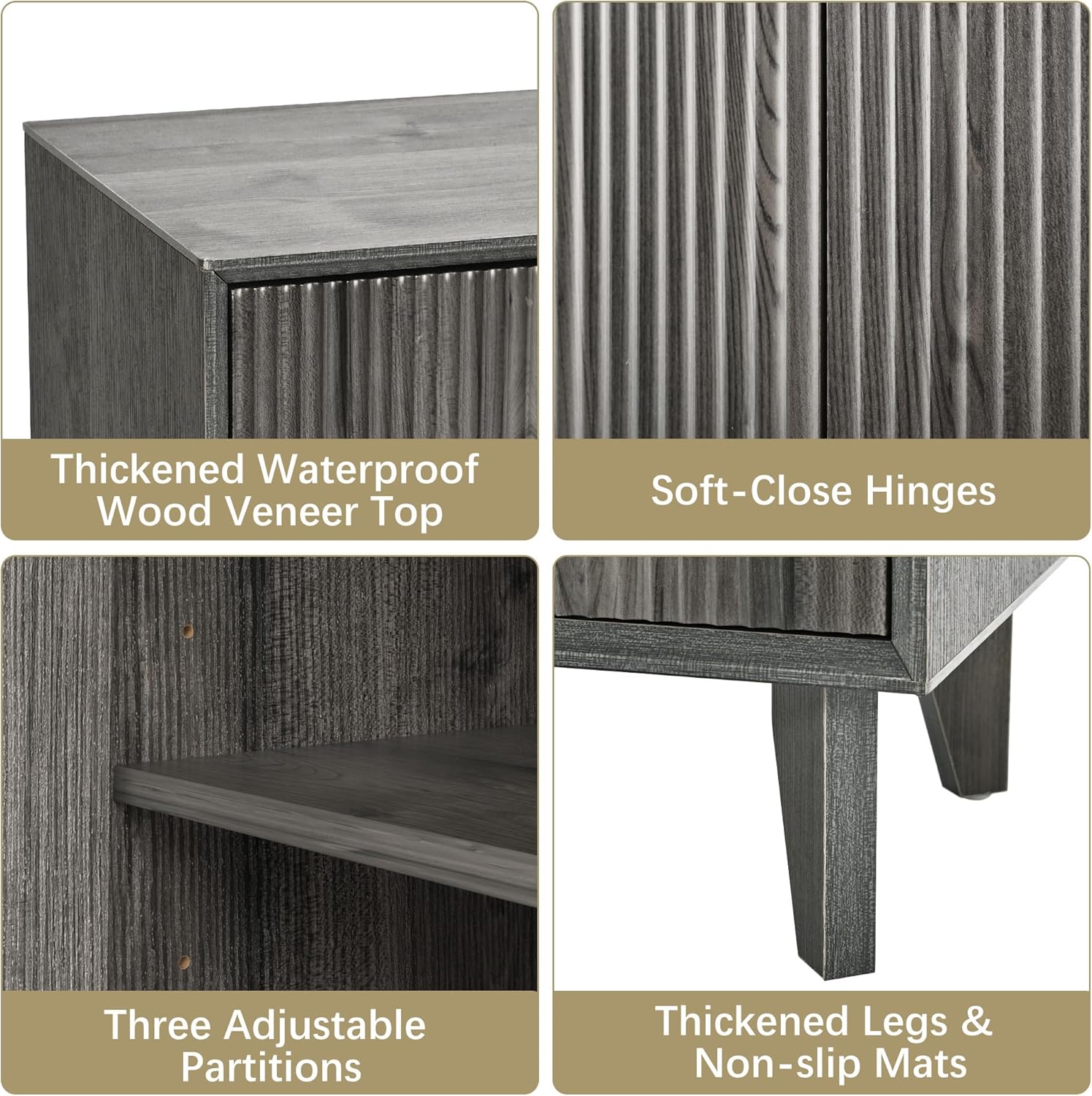 Fluted Cabinet with Storage, Buffet Storage with 4 Doors, Buffet Sideborad Accent Cabinet with Adjustable Shelves for Living Room, Kitchen, Entry, Hallway, Black&Grey