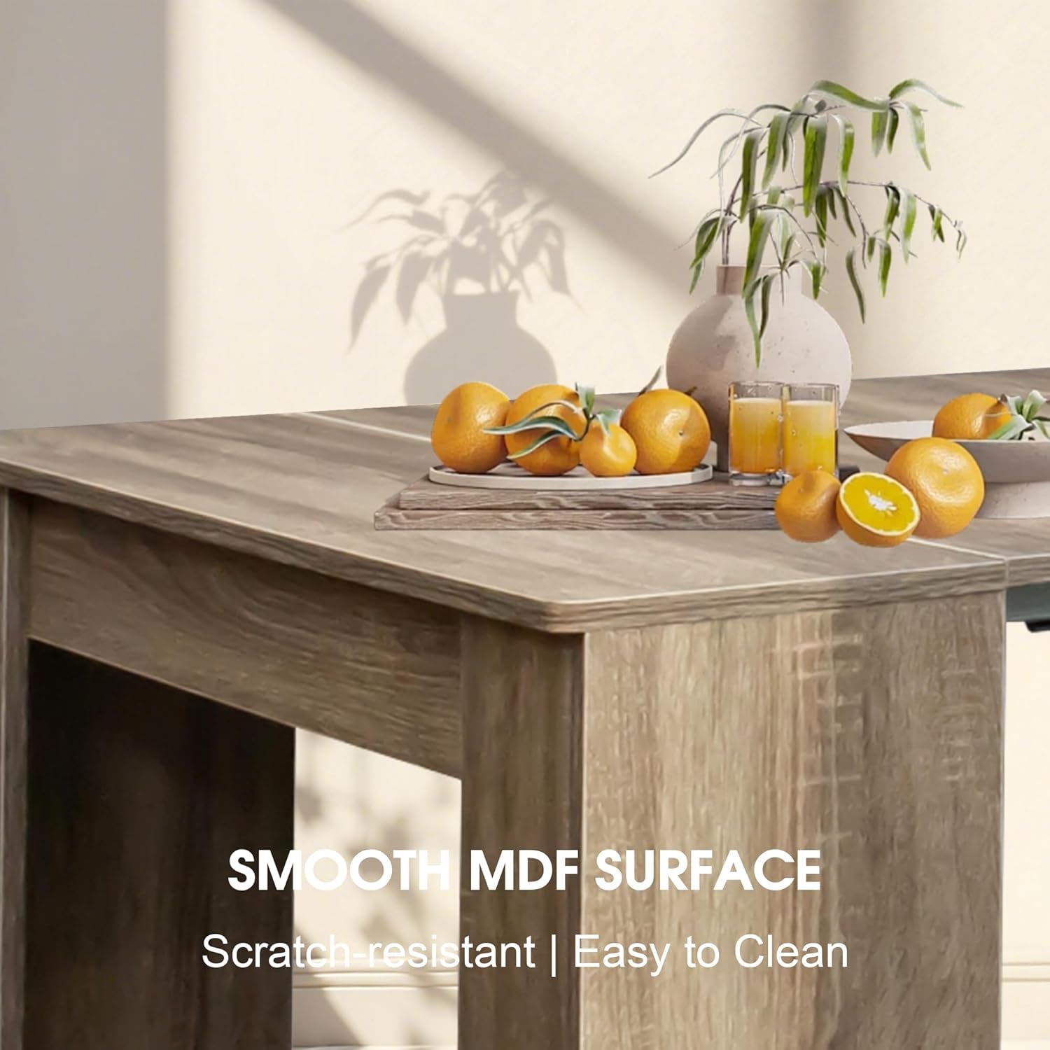 - 【Smooth & Sturdy Mechanism】Heavy-duty MDF construction with reinforced legs ensures stability—no wobbling! The gliding extension system makes setup effortless.