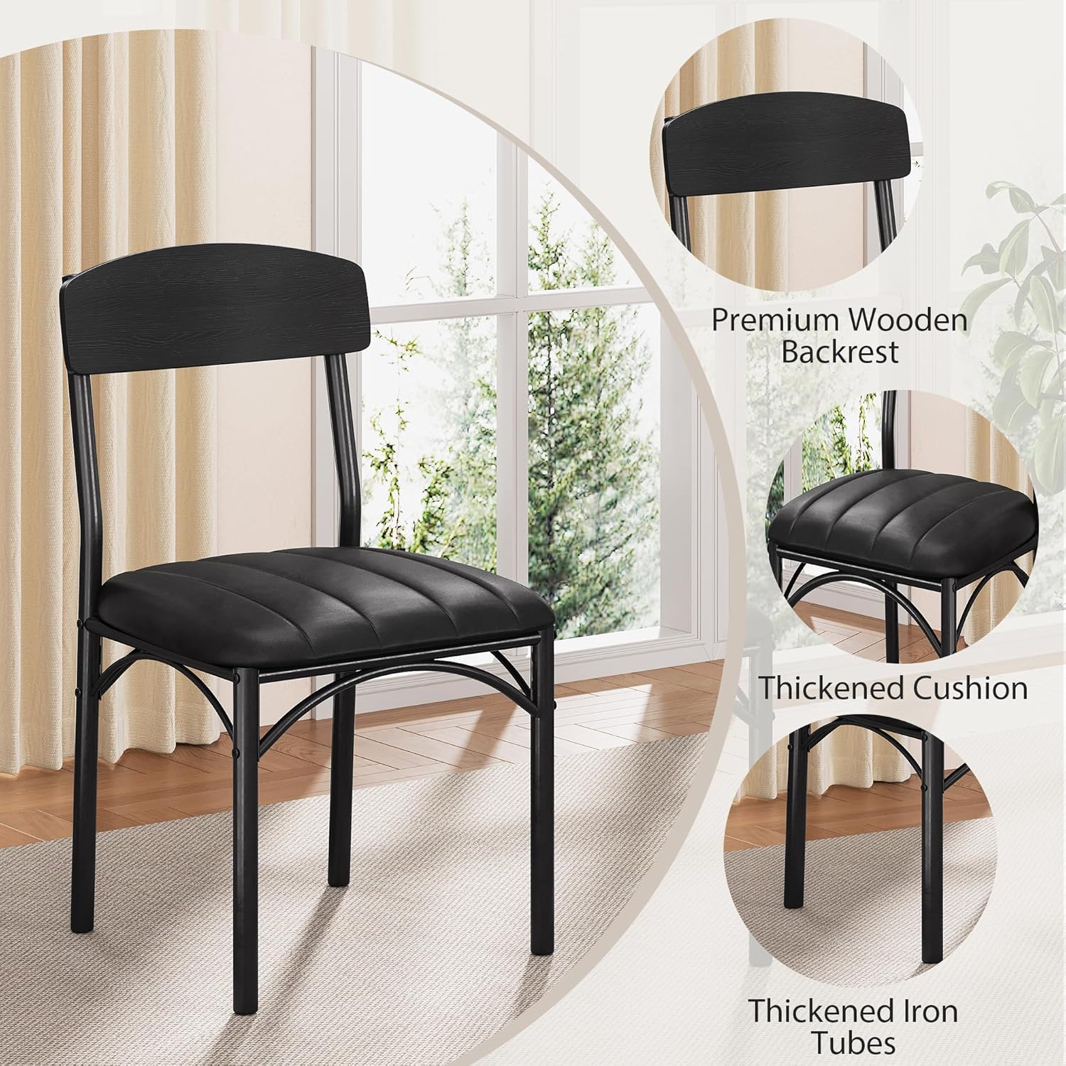 Round Dining Table Set for 4, Kitchen Table and Chairs for 4, Circle Table Round Pedestal Dining Room Dinner Dinette Table Set,5 Piece Space Saving Wood Kitchen & Dining Room Tables (Black, 47In)