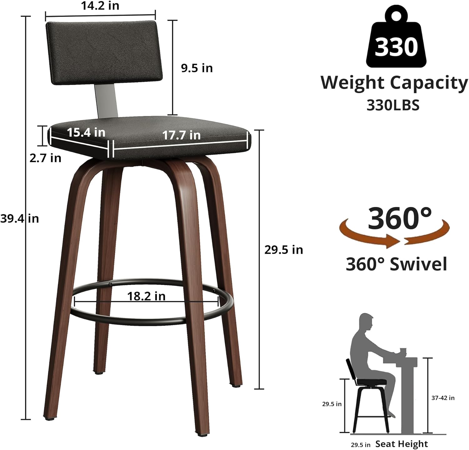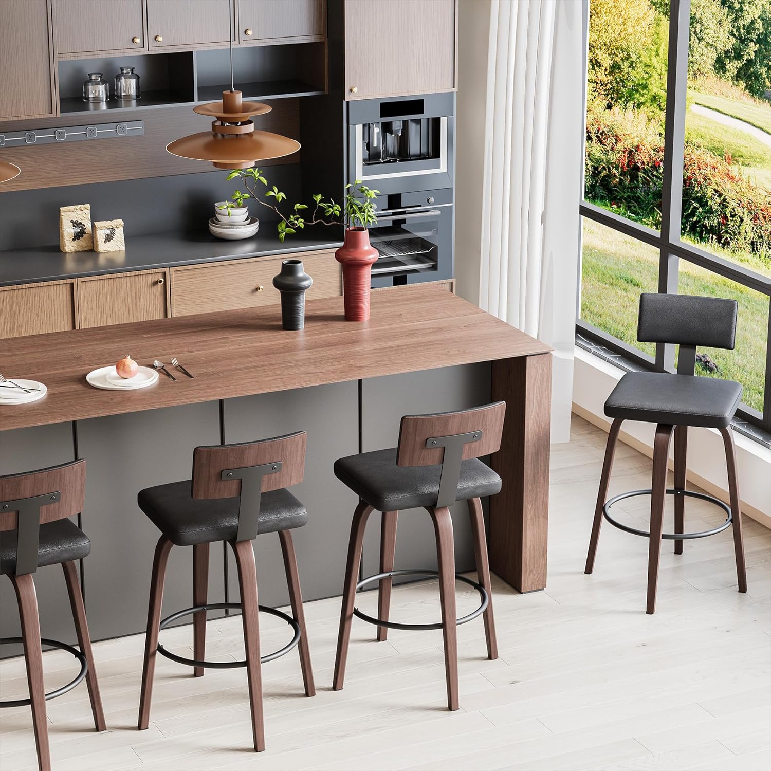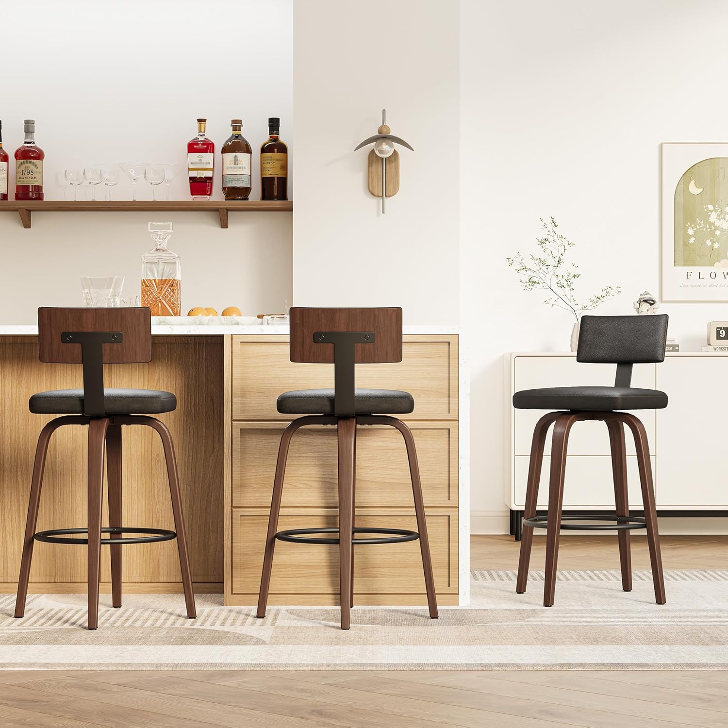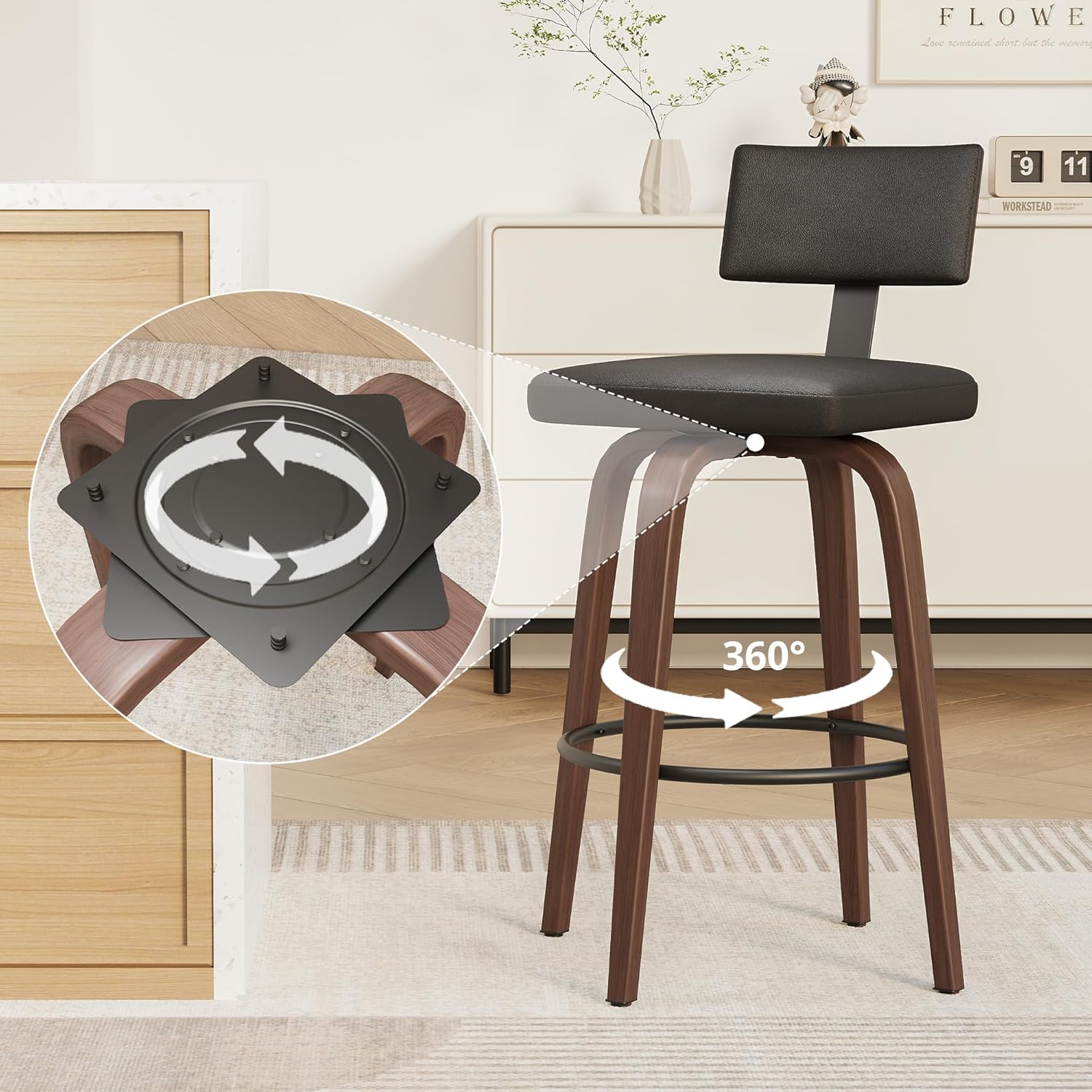 - Mid-Century Modern Style: These modern bar stools feature black seats contrasted with walnut wood texture bent legs, bringing a retro flair to any space. A stunning swivel bar stool that complements both vintage and contemporary décor.