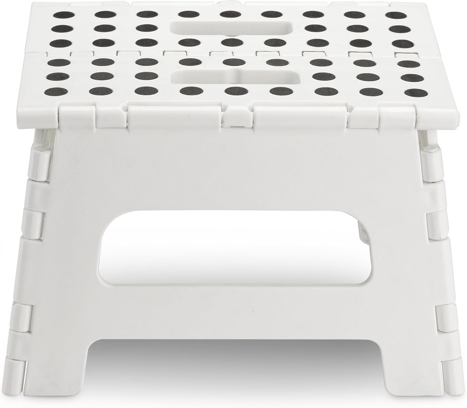 Handy Laundry - Folding Step Stool - Sturdy Enough Collapsible Stool to Support Adults and Safe Enough for Kids - Opens Easy with One Flip - Great for Kitchen, Bathroom or Bedroom (White - 8 Inch)