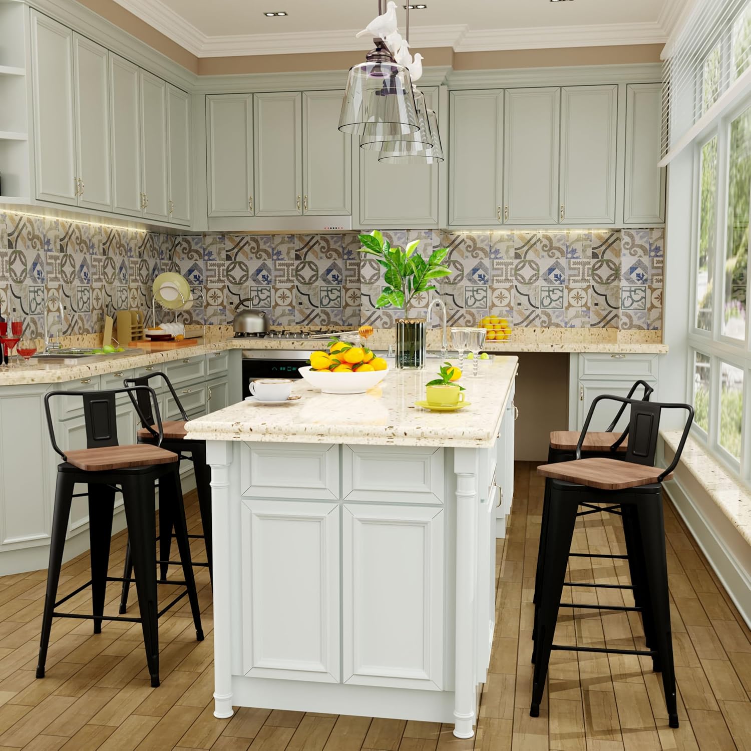 - ăPackaging Includingă 4 swivel low back barstools. It is easy to put together with tools provided