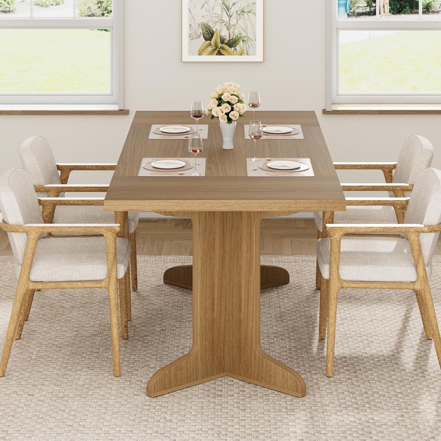 71" Dining Table for 6 to 8 People, Modern Dinner Table with Unique Wooden Legs, Rectangle Dining Table for Kitchen, Dining Room & Living Room, Oak