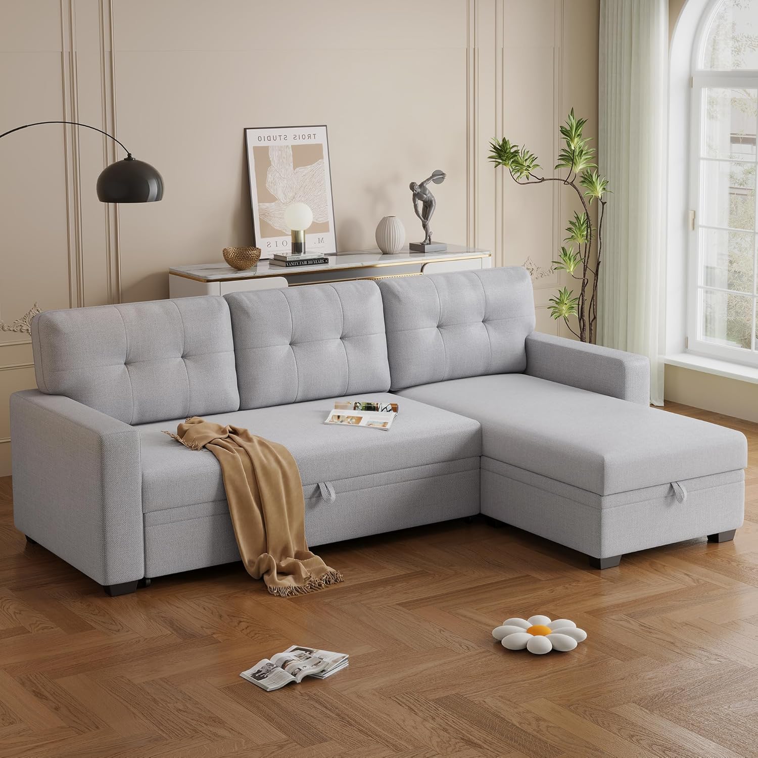 - DURABLE FRAME & COZY TUFTED DESIGN: Upholstered in soft linen with foam-filled seats, this Convertible Sleeper Sofa Bed by Ball & Cast offers a durable construction with tufted seating and reinforced stitching—perfect for everyday relaxation on your L-Shape Reversible Sectional Sleeper Sofa Bed in any home or apartment