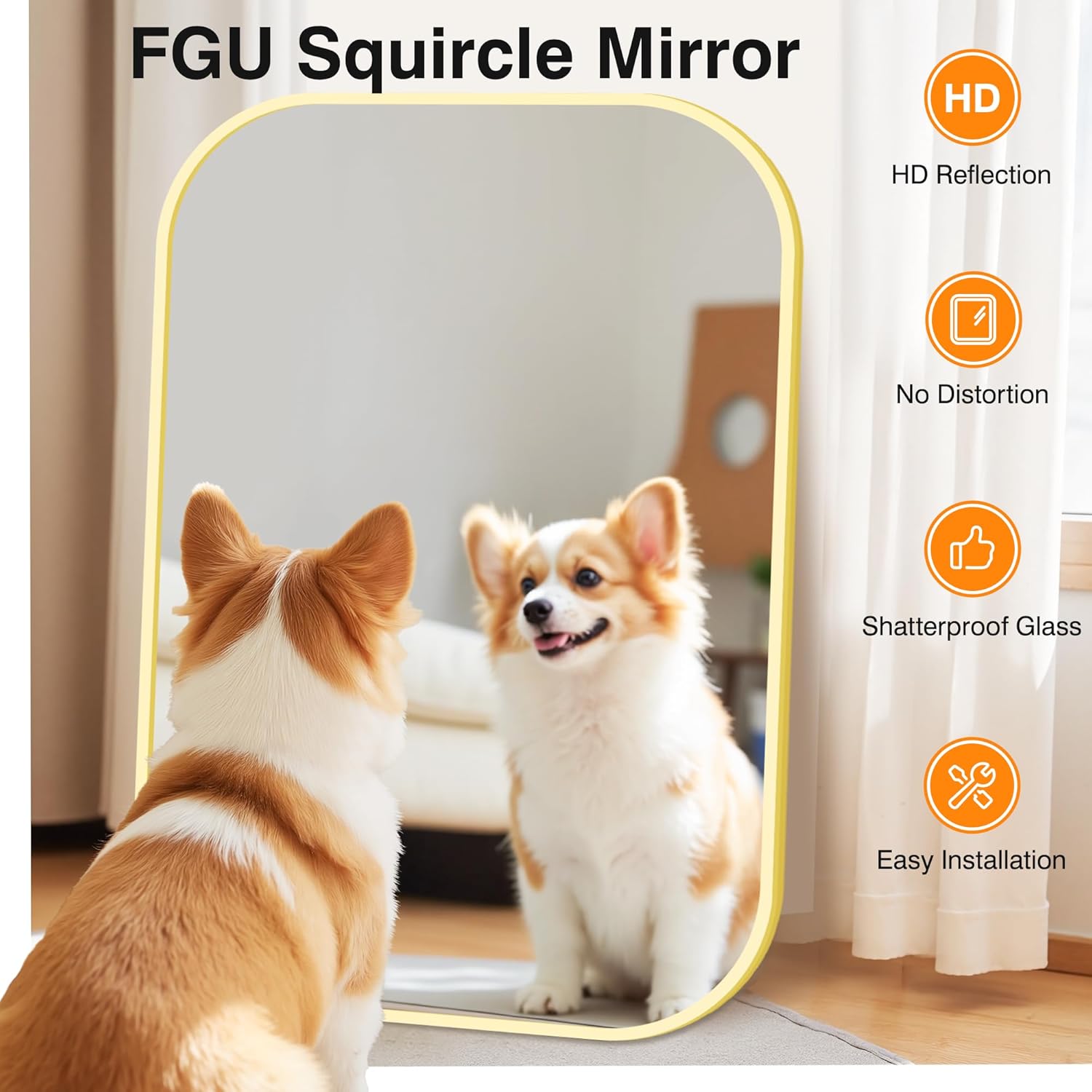 - Dual Mounting Flexibility: FGU Squircle Mirror's 4 pre-drilled holes support vertical or horizontal wall mounting for bathroom sinks, hallways, and bedrooms with effortless flexibility.