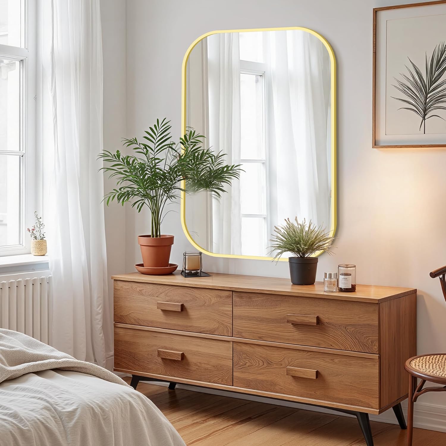 - Matte Aluminum Frame: FGU Squircle Mirror offers matte aluminum frames in Black or Warm Gold - scratch-resistant and elegantly minimal to match any decor style