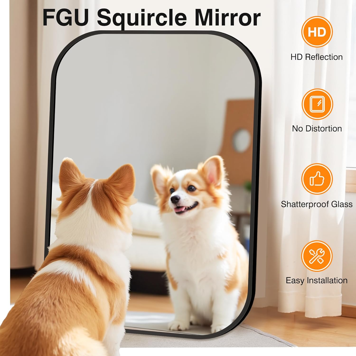 - Dual Mounting Flexibility: FGU Squircle Mirror's 4 pre-drilled holes support vertical or horizontal wall mounting for bathroom sinks, hallways, and bedrooms with effortless flexibility.
