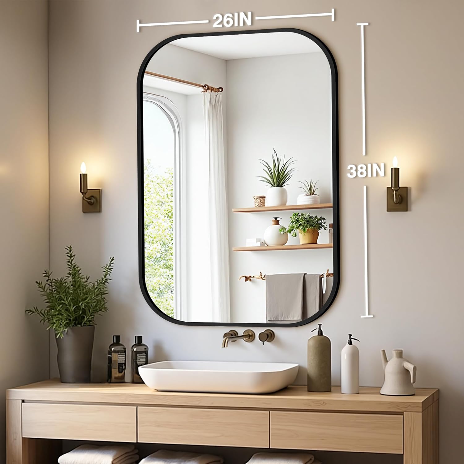 Bathroom Mirrors for Over Sink, 26x38 Black Vanity Mirror for Bathroom Sink, HD Shatterproof Squircle Wall Mirror for Bathroom Washroom Lavatory Restroom Metal Frame