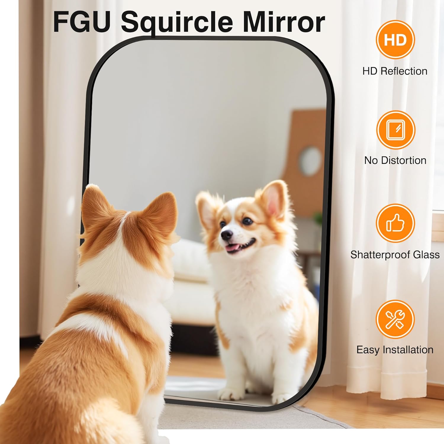- Dual Mounting Flexibility: FGU Squircle Mirror's 4 pre-drilled holes support vertical or horizontal wall mounting for bathroom sinks, hallways, and bedrooms with effortless flexibility.