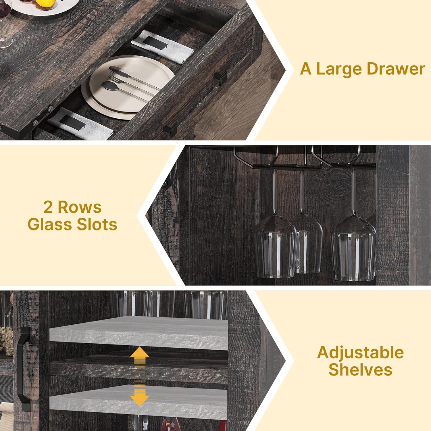 DWVO Farmhouse Coffee Bar Cabinet, Sideboard Buffet Cabinet with Drawer & Adjustable Shelves, Storage Cabinet with Sliding Barn Door for Kitchen and Living Room, Dark Rustic Oak