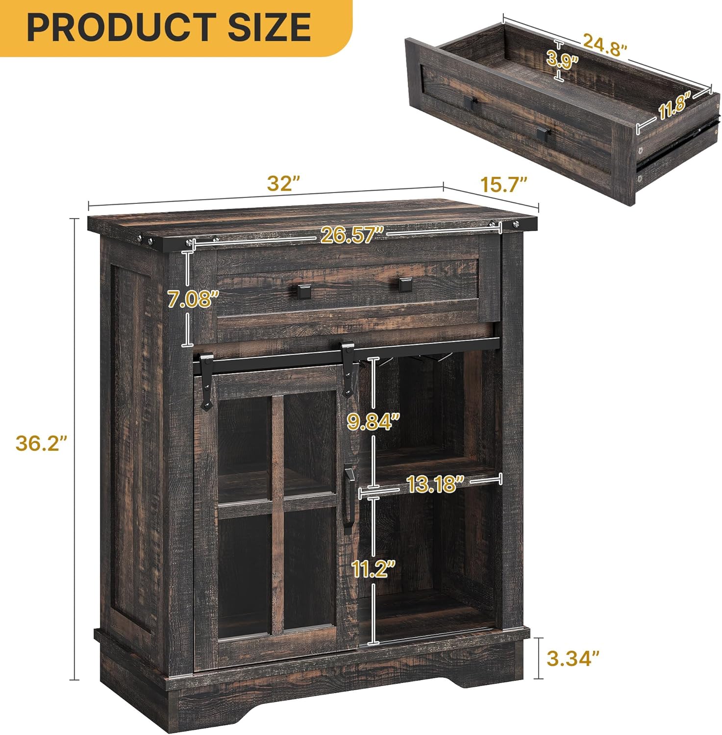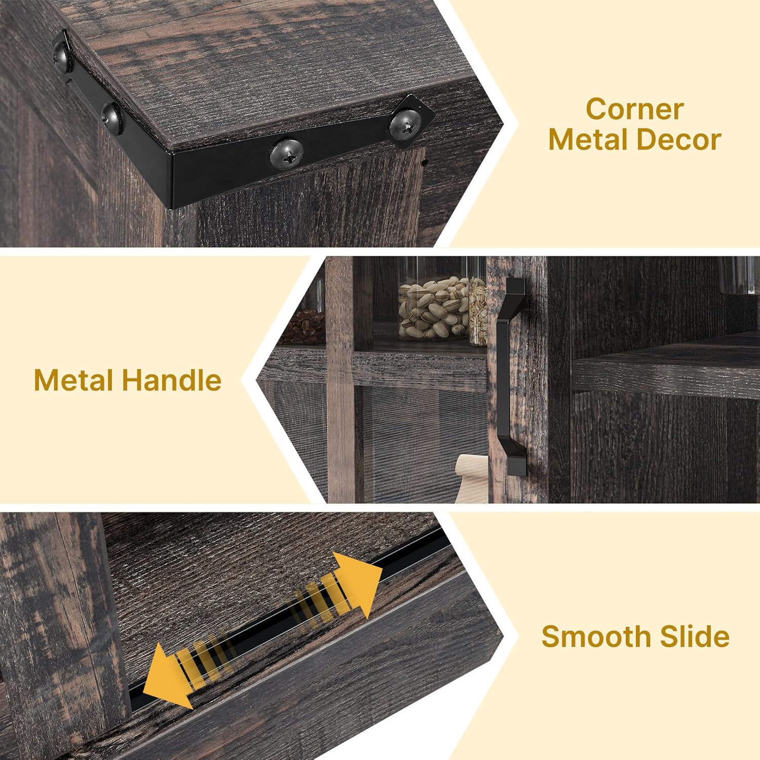 - Farmhouse Style Charm: Add an industrial touch to your home with this rustic coffee cabinet, which seamlessly fits into any existing décor theme. It includes sliding barn doors that add a rustic style. The coffee bar table is divided into hidden and open areas, which saves space and makes it easy to access essentials