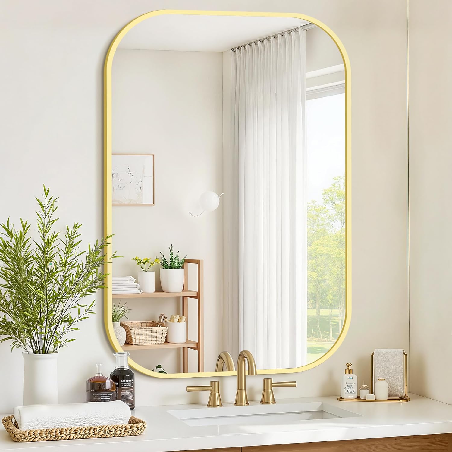 Bathroom Mirrors for Over Sink, 28x40 Gold Vanity Mirror for Bathroom Sink, HD Shatterproof Squircle Wall Mirror for Bathroom Washroom Lavatory Restroom Metal Frame