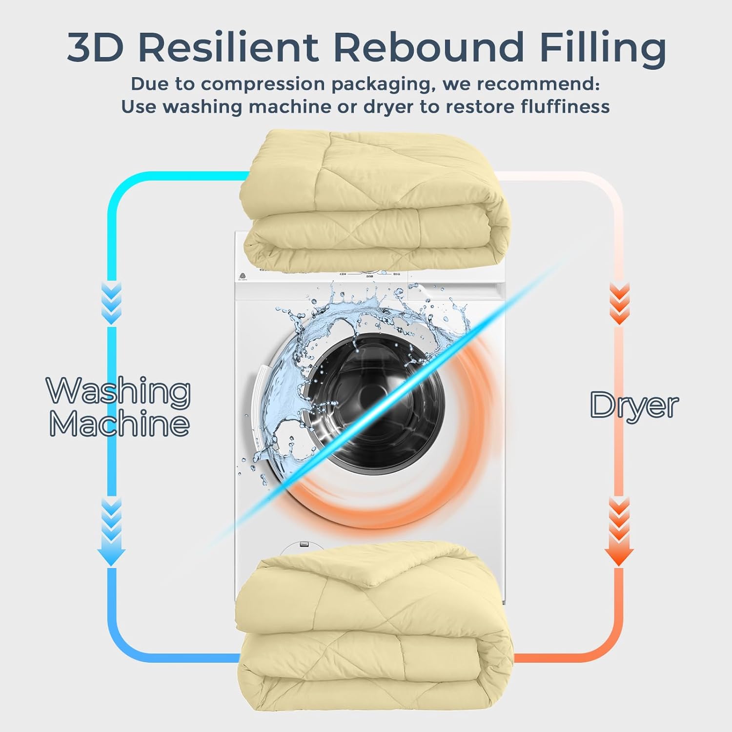 HEVUMYI Cream Yellow King Comforter Set - 7-Piece All Season Bed in a Bag King, Ultra Soft Bedding Set with Comforter, Flat Sheet, Fitted Sheet, Pillowcases, Pillow Shams