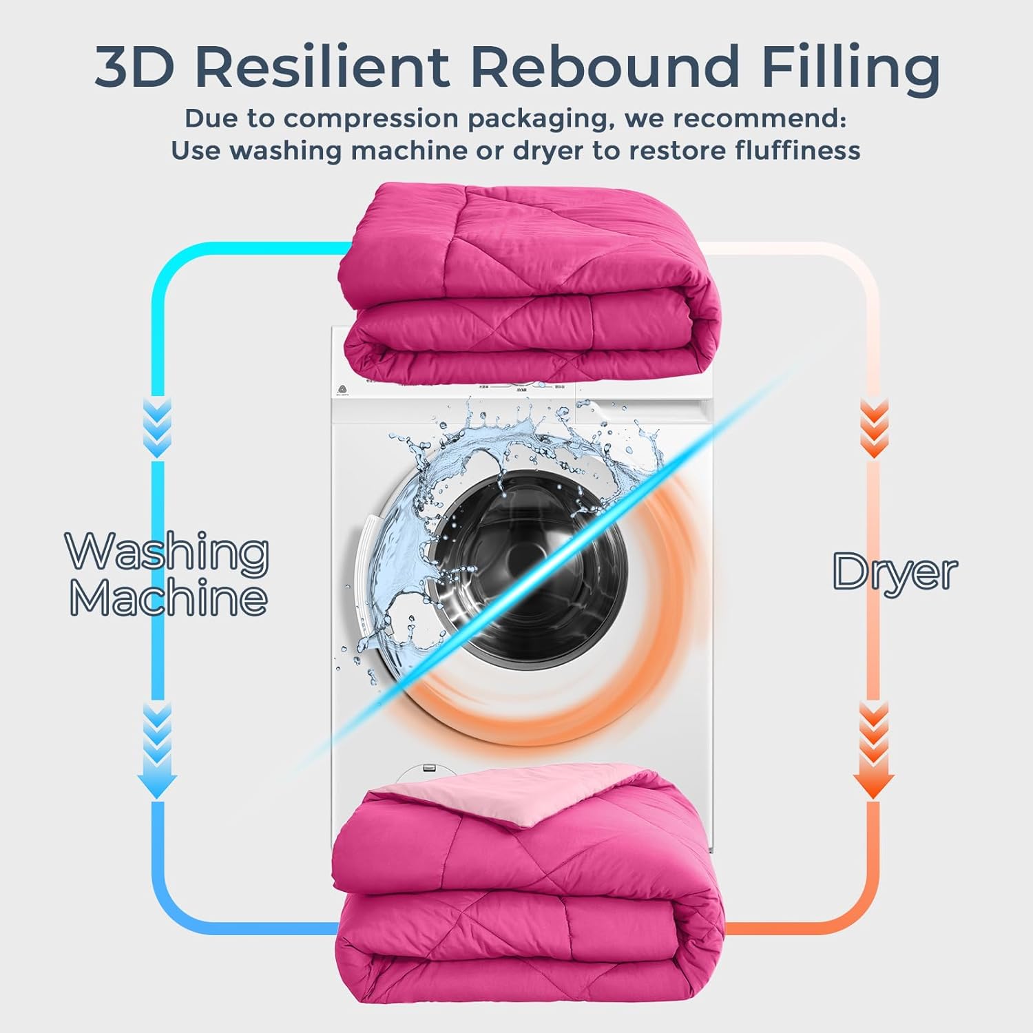 HEVUMYI Hot Pink & Baby Pink Queen Comforter Set - 7-Piece All Season Bed in a Bag Queen, Ultra Soft Bedding Set with Comforter, Flat Sheet, Fitted Sheet, Pillowcases, Pillow Shams