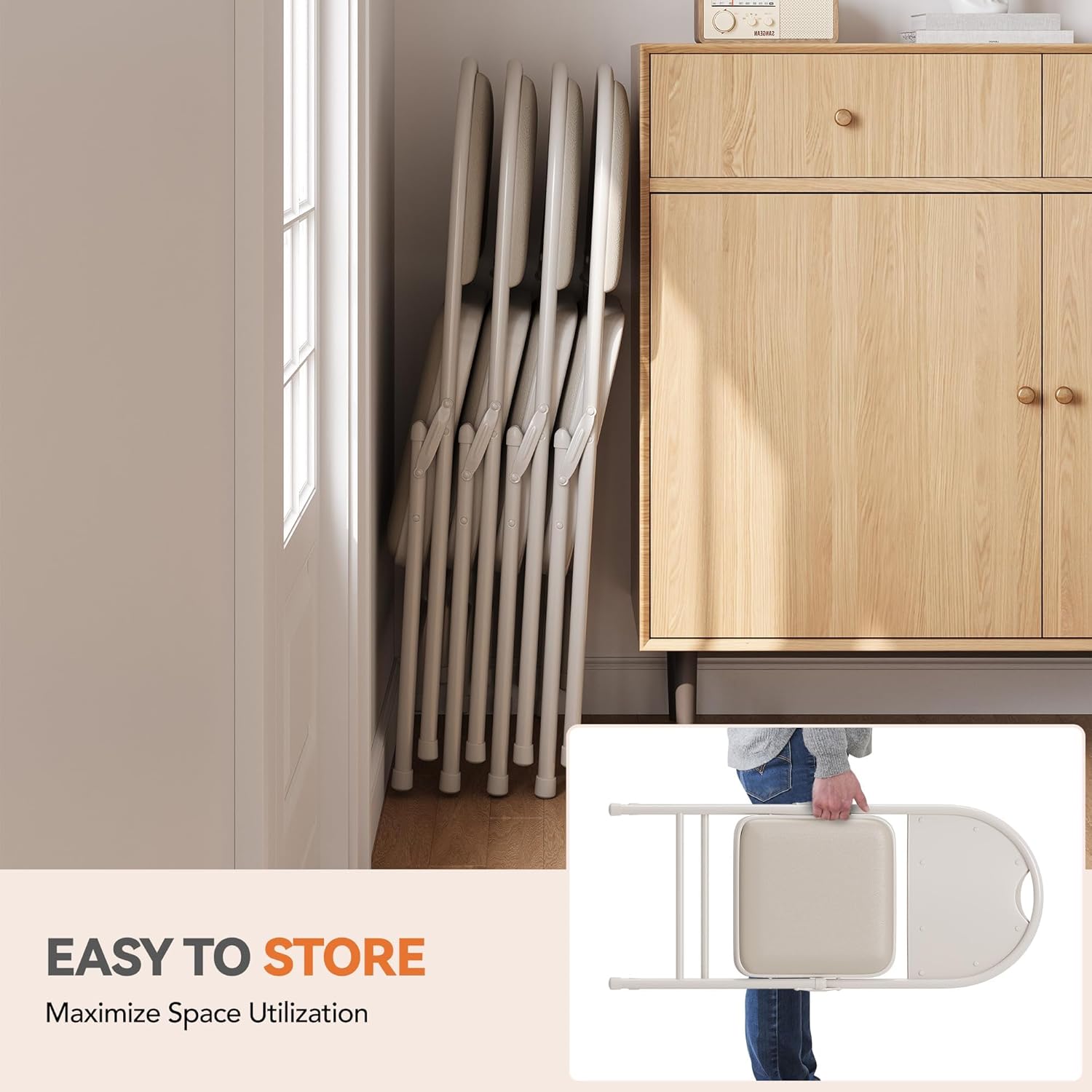 GarveeHome 4 Pack Folding Chairs with PU Leather Padded Cushion and Back, Metal Foldable Chair for Indoor Outdoor, Commercial Stackable Guest Chairs for Camping, Dining Room, Office, Party, Beige