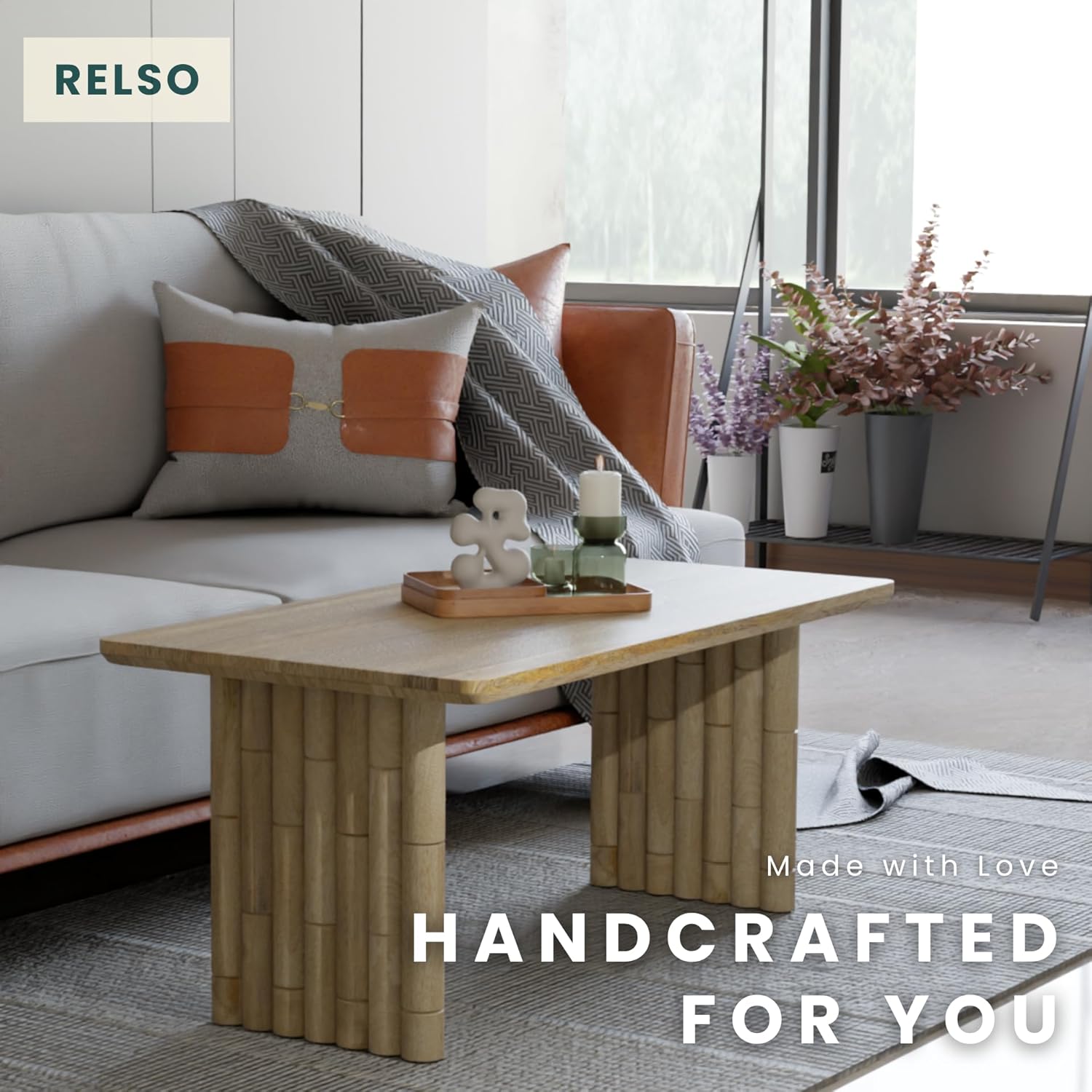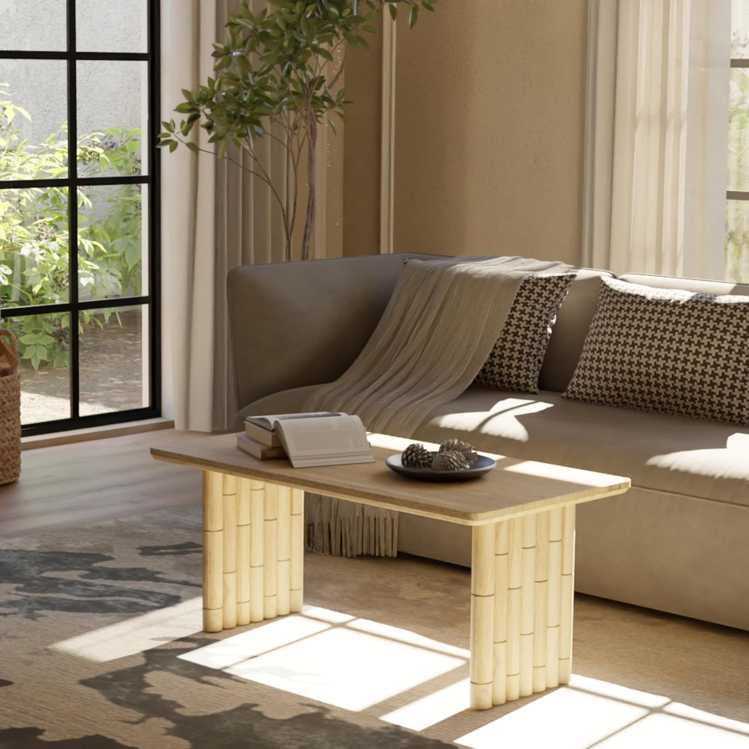 Bambos Coffee Table | Sold Mango Wood Center Table with Natural Finish | Handcrafted Accent for Living Room, Modern Decor, Apartment or Office | Bamboo Inspired Legs, Easy Assembly, Durable, Compact