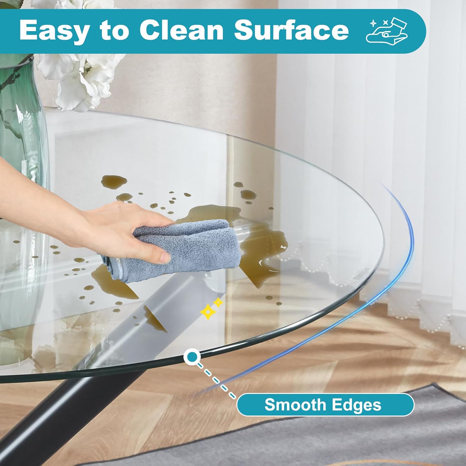 - Hassle-Free Maintenance: The smooth tempered glass surface wipes clean in seconds, resisting spills and stains. A simple, damp cloth restores its shine, while the metal frame requires minimal upkeep. Perfect for busy households.