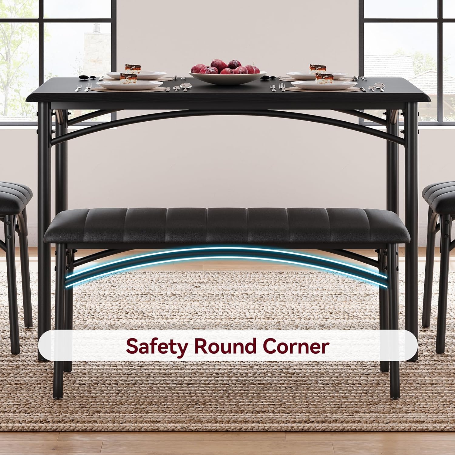 - Durable & Stable Construction: Built to last, this kitchen table set with bench combines a heavy-duty metal frame with a high-quality MDF tabletop reinforced by thickened steel. The specially designed U-shaped base enhances stability and strength, while each chair and bench supports up to 400 lbs—perfect for accommodating family and guests with confidence.