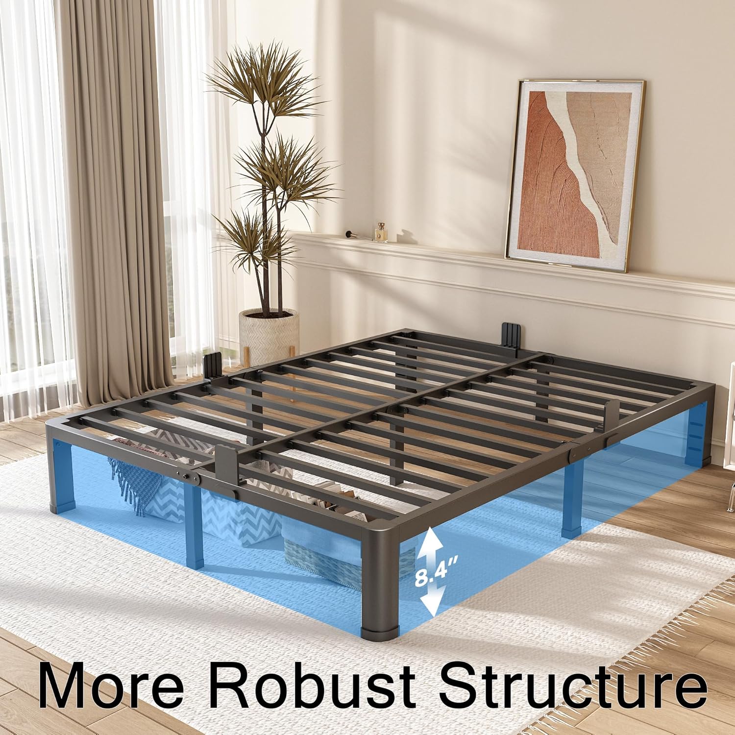 - REASONABLE STORAGE SPACE: The 6 inch bed frame has 4.4 inches of under-bed storage space for boxes, clothes, toys, quilts and more, keeping the room neat and organized and reducing clutter.