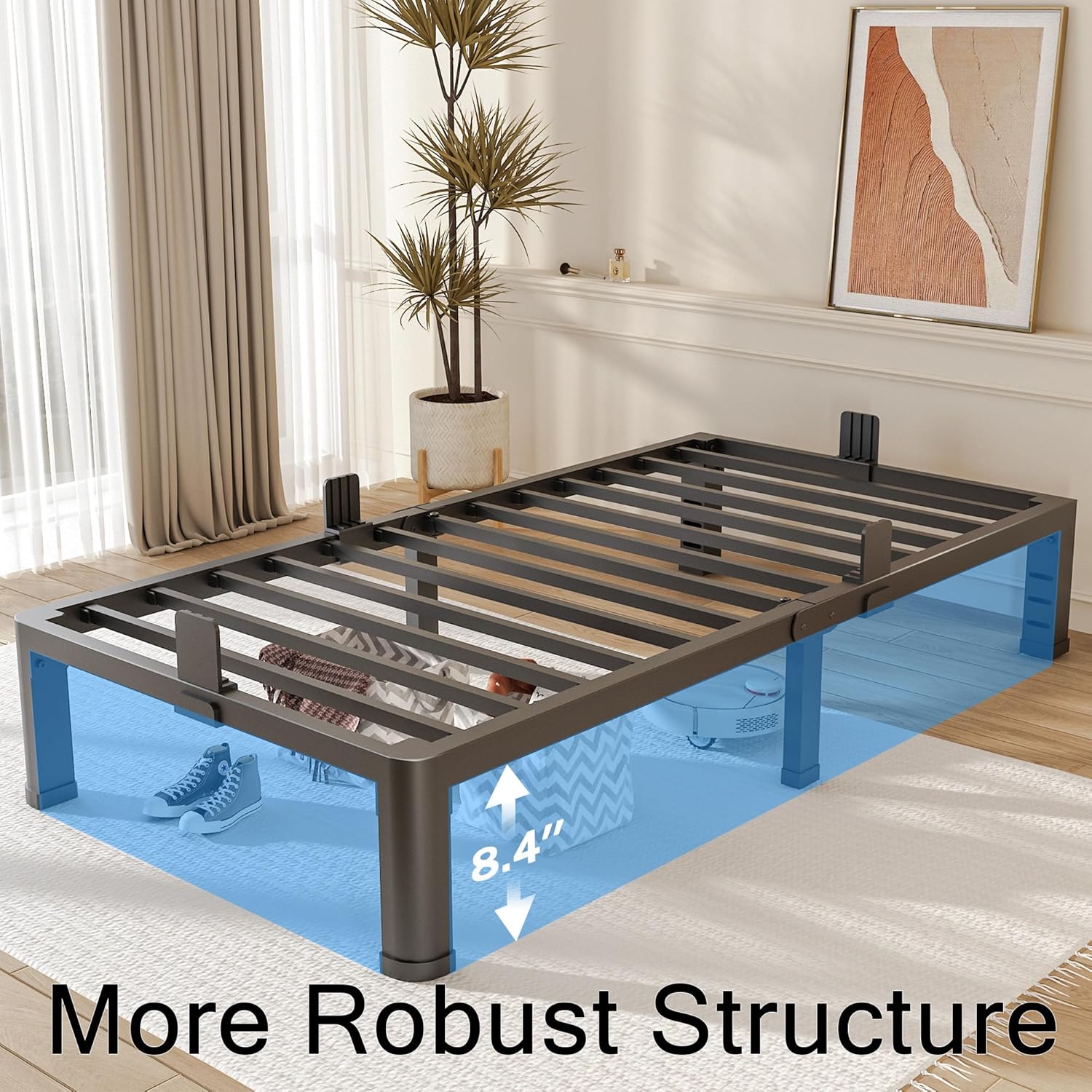 - NON-SLIP NOISELESS & ROUND CORNER DESIGN: The platform bed frame twin is designed with rounded corners prevent injuries caused by toe bumps. Rubber feet have a sound deadening effect and they prevent the metal bed frame from sliding for bed legs while avoiding the floor being scratched.
