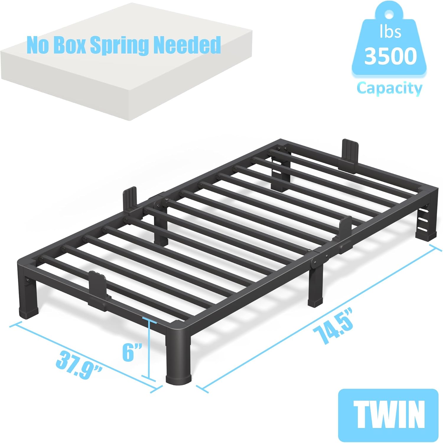 FUIOBYVV 6 Inch Twin Bed Frame with Rounded Corner and Headboard Hole Mattress Retainers 3500 LBS Metal Heavy Duty Steel Slats Support No Box Spring Needed Platform Noise Free Easy Assembly