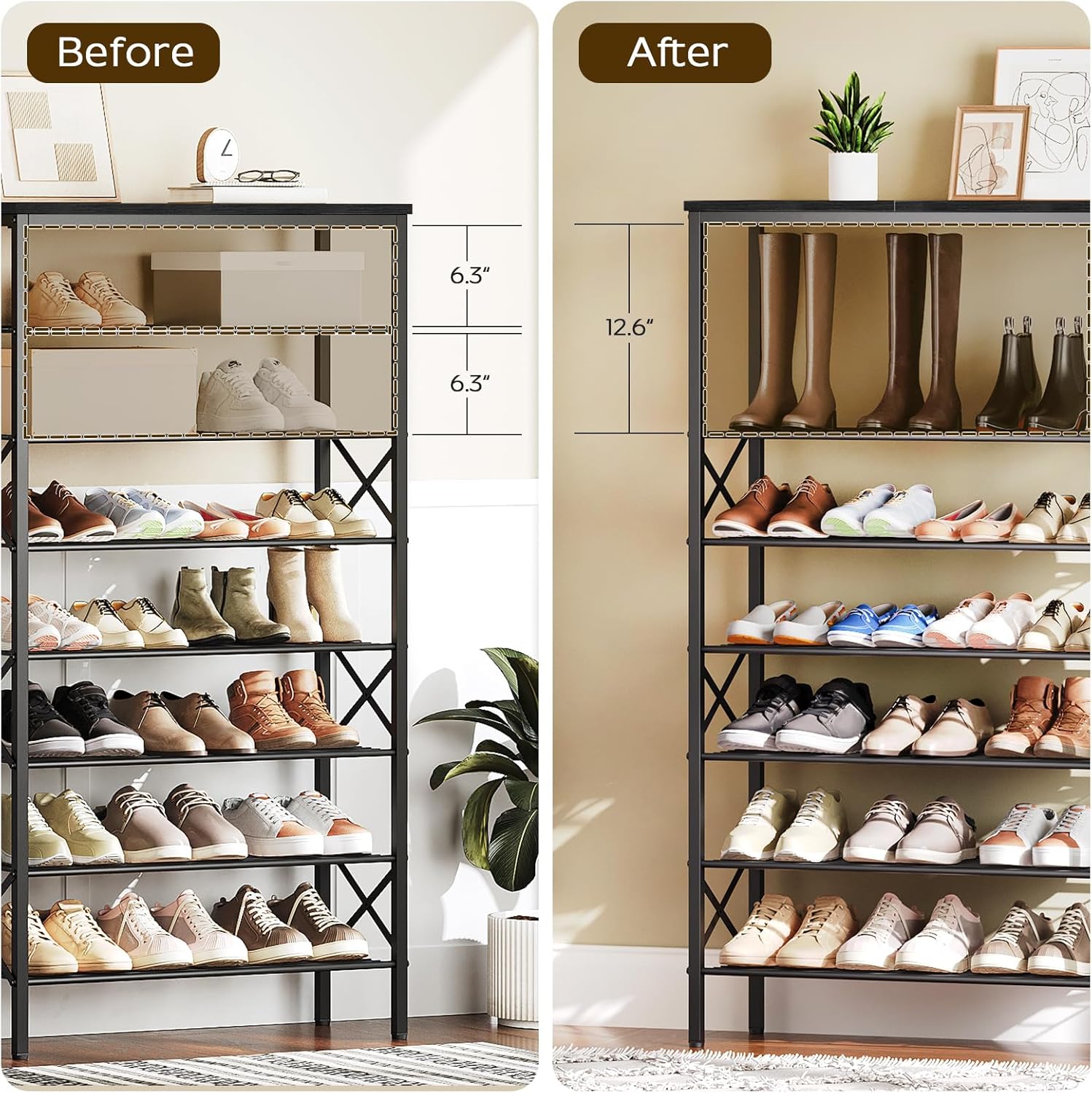 - Reliable Shoe Organizer: The shoe rack is built with quality particleboard and metal, strong and bearable. The top panel can undertake 44 lb and each mesh shelf 22 lb. The side X-shaped design of the metal shoe organizer offers doubled enhancement for overall stability