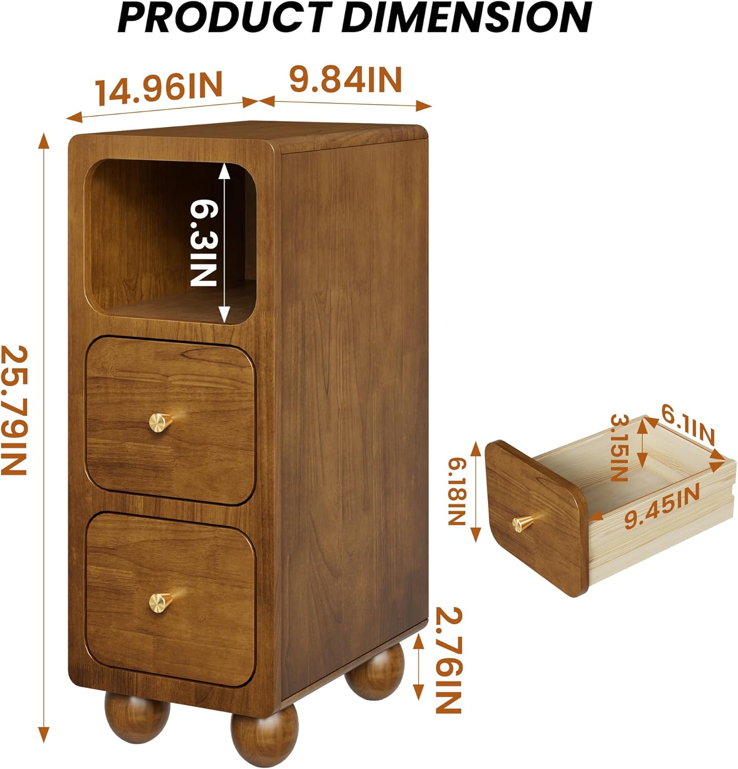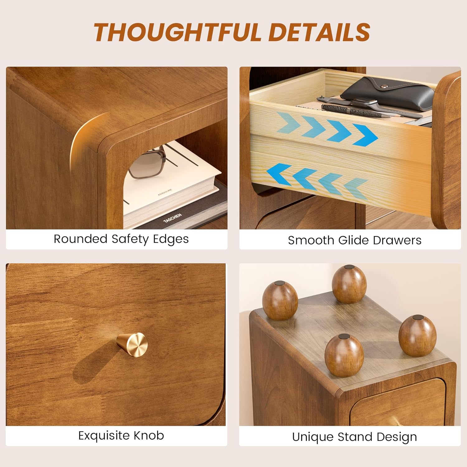 - 【Unique Design Base】 There are four round brackets at the bottom of the night stand, which not only provide solid support for the cabinet, but also bring a unique visual effect. This design not only increases the stability of the cabinet, but also adds a modern touch to its overall shape