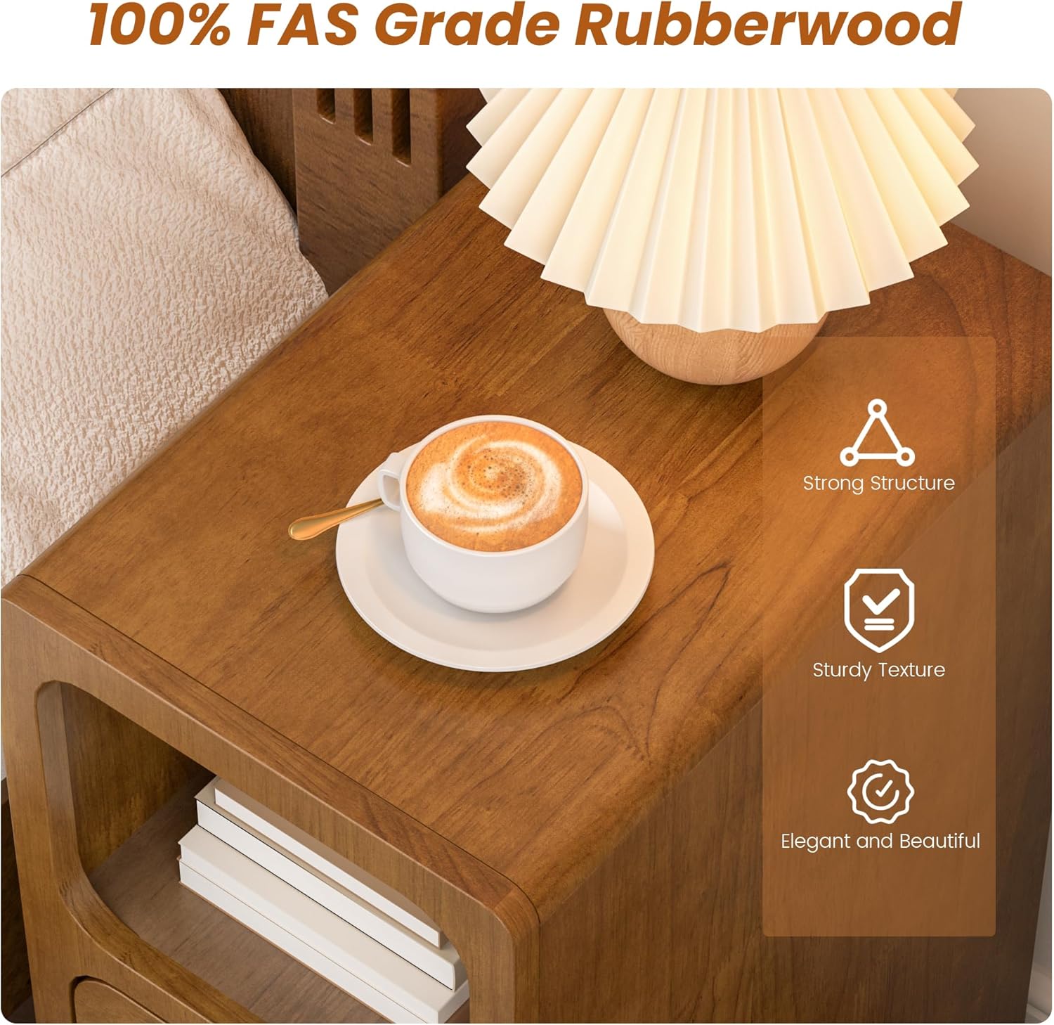 - 【Solid Rubberwood Nightstand】 Wooden nightstand is carefully made of high quality rubberwood to ensure its durability and stability. Rubberwood not only has high strength and long service life, but also has excellent wear resistance and is suitable for long-term use