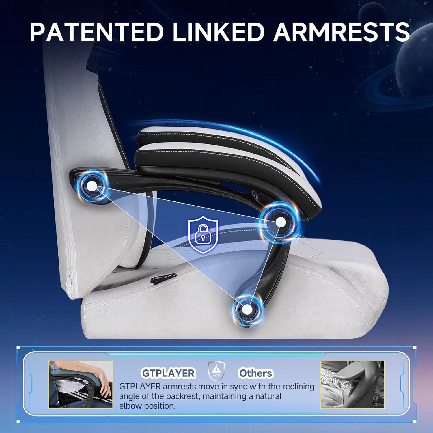 GTPLAYER Gaming Chair, Video Game Chairs with Footrest and Lumbar Support, Computer Chair for Adults with Extended Backrest, Ergonomic Reclining Silla Gamer, Fabric, Grey