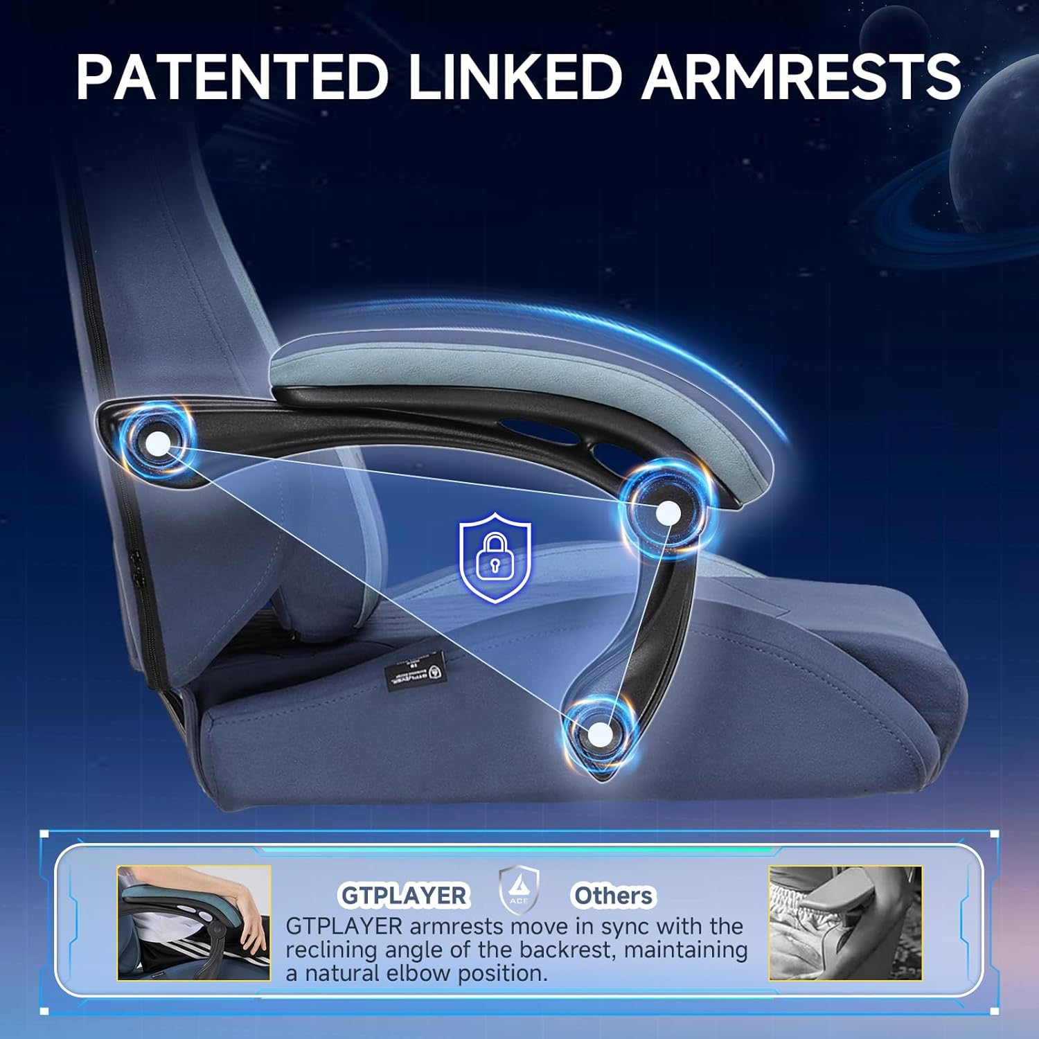 - 【Breathable Fabric & Comfortable Padding】 GTPLAYER's fabric-covered gaming chair is particularly skin-friendly and breathable – perfect for long sessions on hot days. The soft foam padding provides lasting comfort – ideal as a gaming chair or office chair in the home office. The reinforced mechanism and Class 3 gas lift guarantee stability in any sitting position.