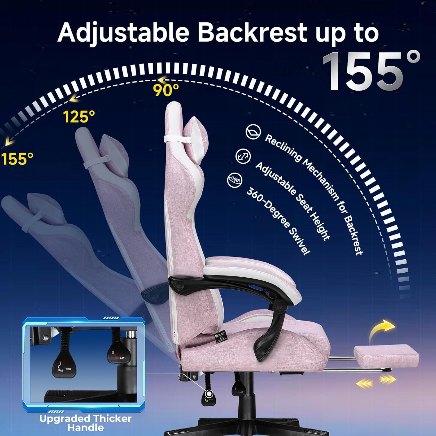 GTPLAYER Gaming Chair, Video Game Chairs with Footrest and Lumbar Support, Computer Chair for Adults with Extended Backrest, Ergonomic Reclining Silla Gamer, Linen Fabric, Pink