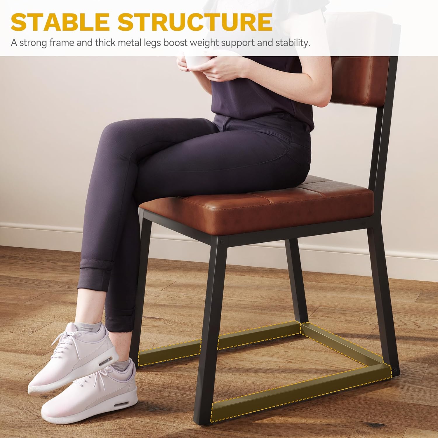 - Sturdy Material: With sturdy metal legs and adjustable feet, your dining chairs stay steady on any surface. You'll feel grounded without a wobble, and your floors stay scratch-less. It's the kind of stability that makes every sit feel secure
