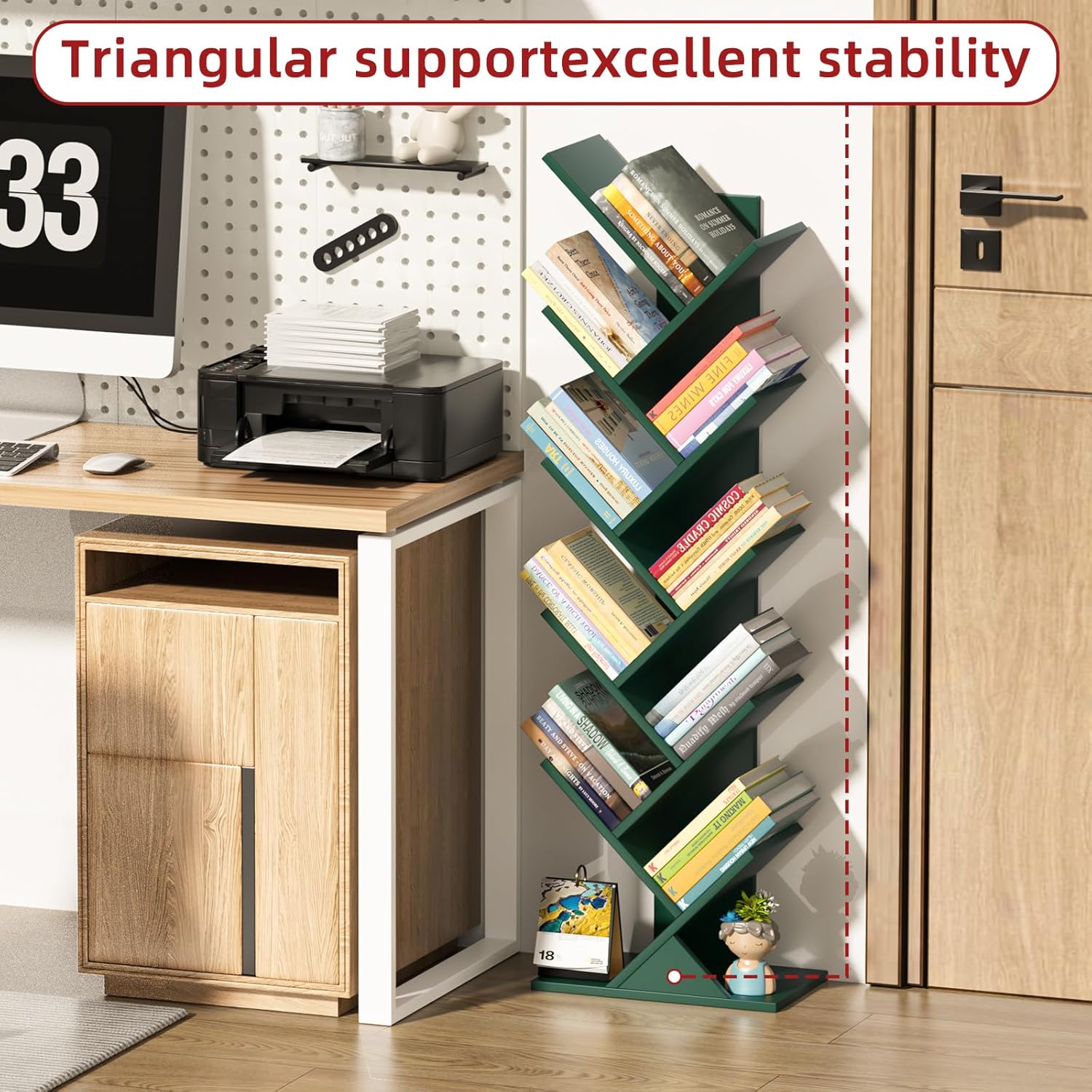 - [Anti-Tip Design for Added Safety] This bookshelf features an all-wood, 10-shelf tree-shaped cabinet design, as well as an anti-tip design that ensures its stability and durability. It's 100% safe for homes with children or pets.
