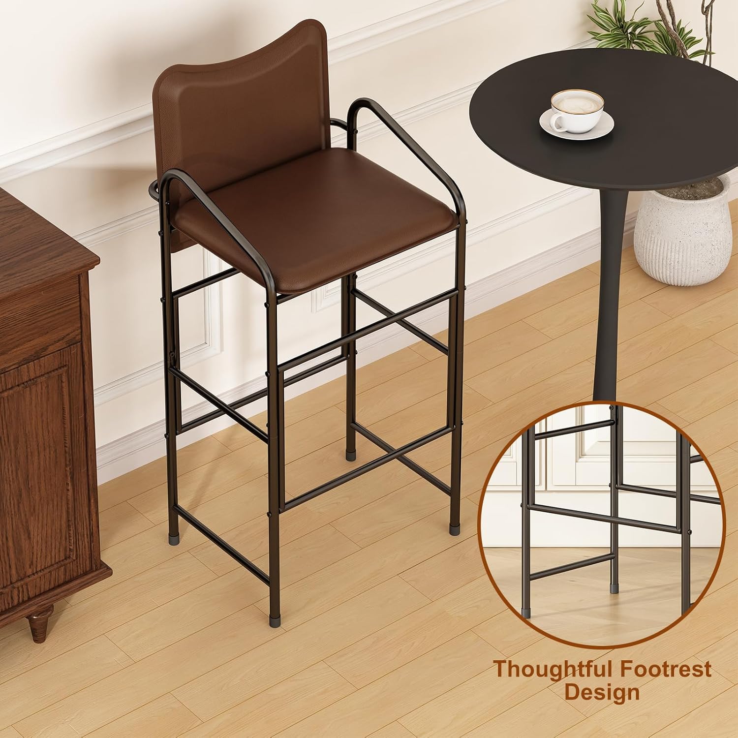 - Industrial Modern Style: Featuring a sleek black metal frame and rich brown leather upholstery, this counter height stool set effortlessly blends industrial and modern aesthetics—perfect for kitchens, dining areas, or home bars