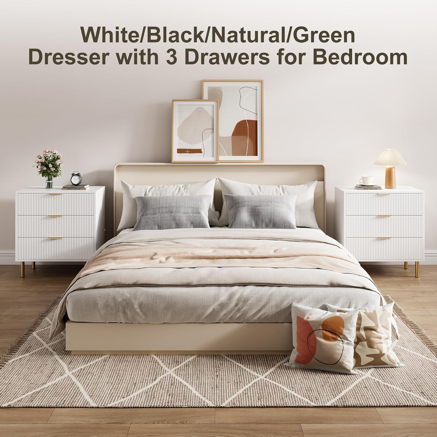 White Dresser, Modern 3 Drawer Dresser for Bedroom with Gold Handle and Large Drawer, Wood Double Chest of Drawers and Storage Organizer for Living Room, Hallway, Entryway