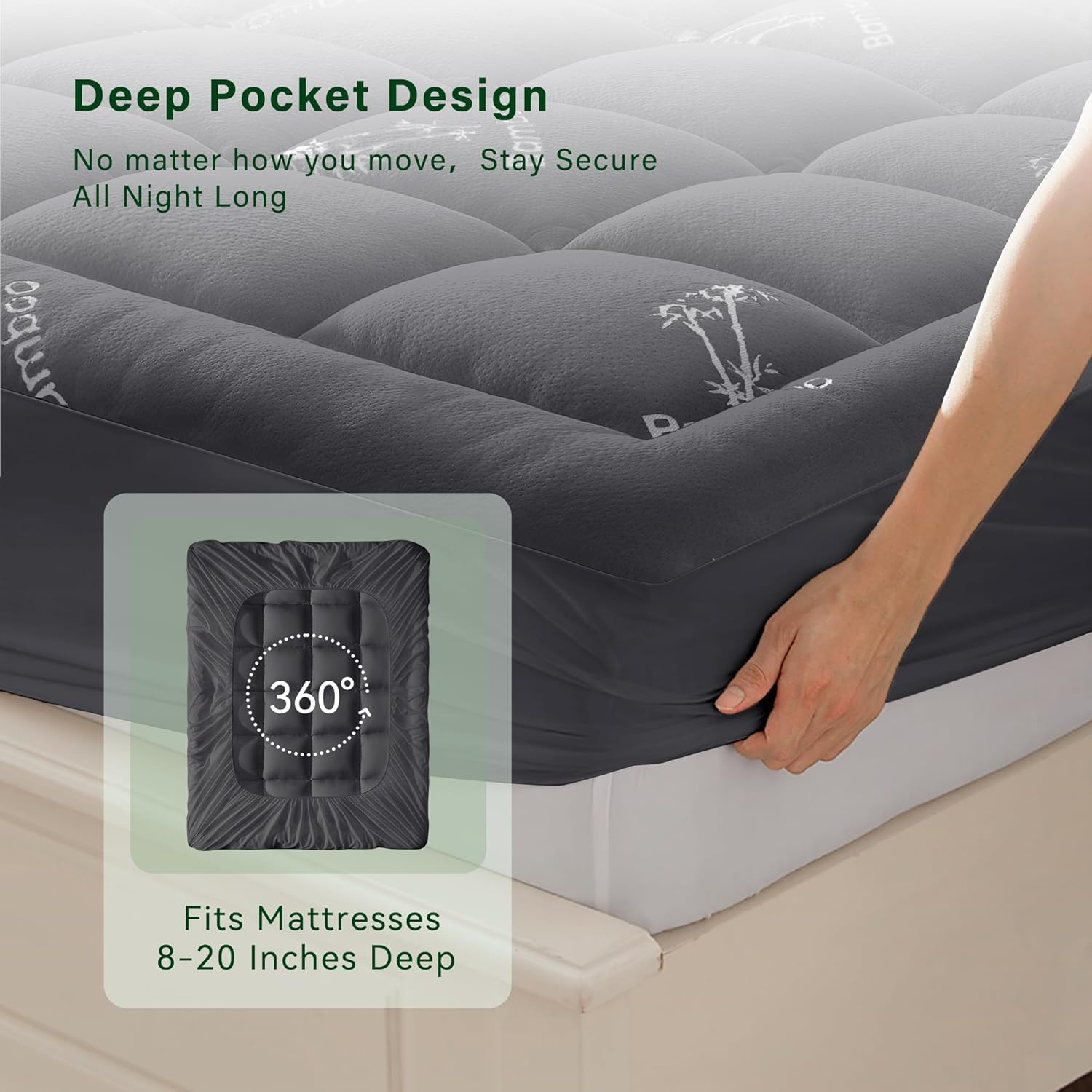 - Deep-Pocket Secure Fit - The 360° elastic skirt effortlessly hugs mattresses 8"-21" thick. Works seamlessly as a mattress protector topper that stays firmly in place - no slipping, no bunching.