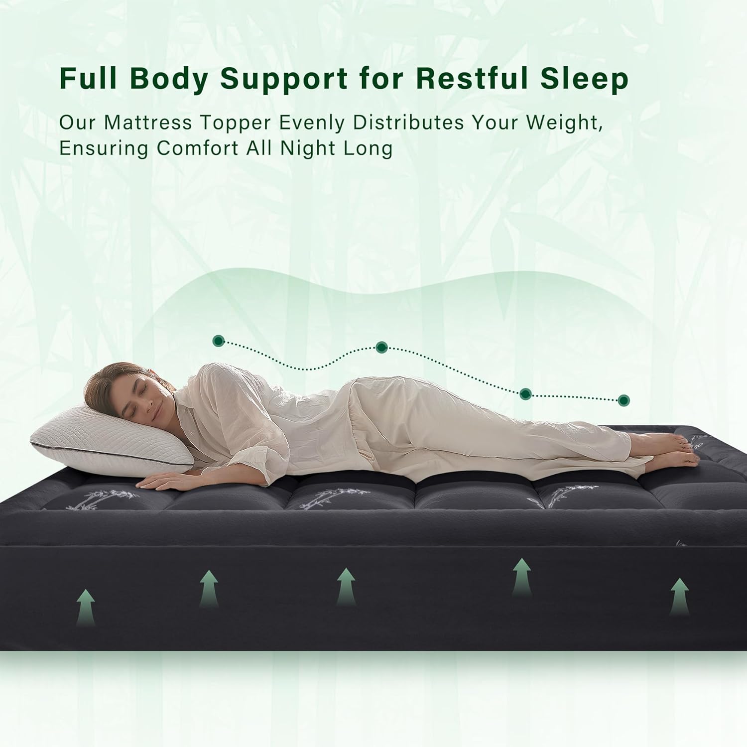 - Cool & Breathable King Mattress Topper - Experience all-night comfort with our cooling mattress topper featuring a premium 40% rayon derived from bamboo + 60% polyester air-layer fabric. This cooling mattress topper queen size bed essential combines silk-like softness with 3D ventilation technology - perfect for hot sleepers and sensitive skin.