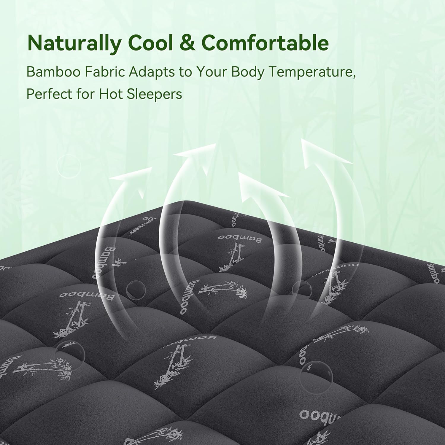 - Cool & Breathable Queen Mattress Topper - Experience all-night comfort with our cooling mattress topper featuring a premium 40% rayon derived from bamboo + 60% polyester air-layer fabric. This cooling mattress topper queen size bed essential combines silk-like softness with 3D ventilation technology - perfect for hot sleepers and sensitive skin.