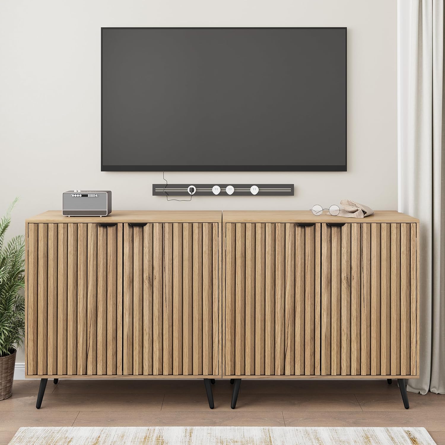 - 【Unique Design】This buffet cabinet has procured a special process that allows the recessed design of the doors to present unity without any gaps. The combination of natural colour and matte metal gives a perfect blend of mid-century and modern. It can be applied to any style.