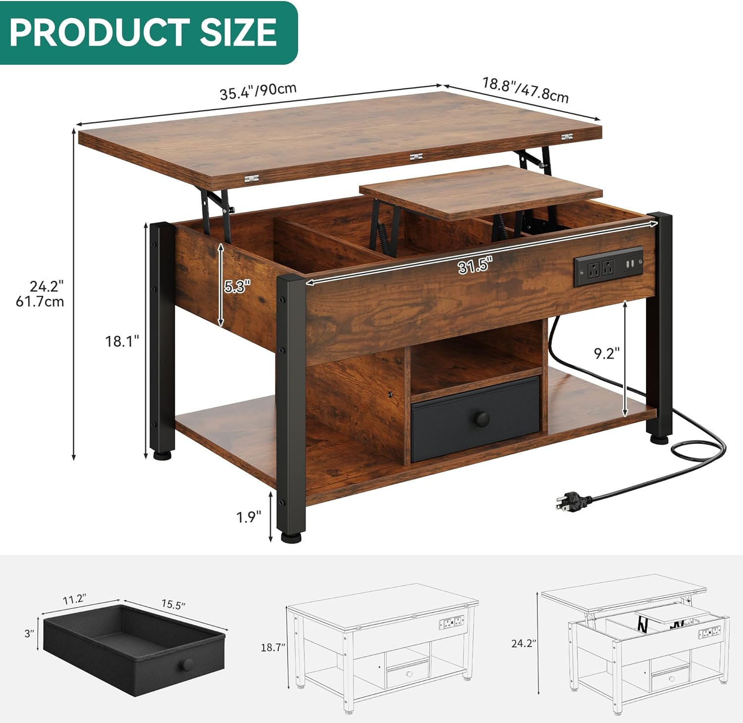 - Rock-Solid Construction: This lift top coffee table is built to last with thick steel frame and P2 compliant particleboard, offering strong stability and weight capacity; The textured surface resists scratches, spills, and daily wear for lasting use