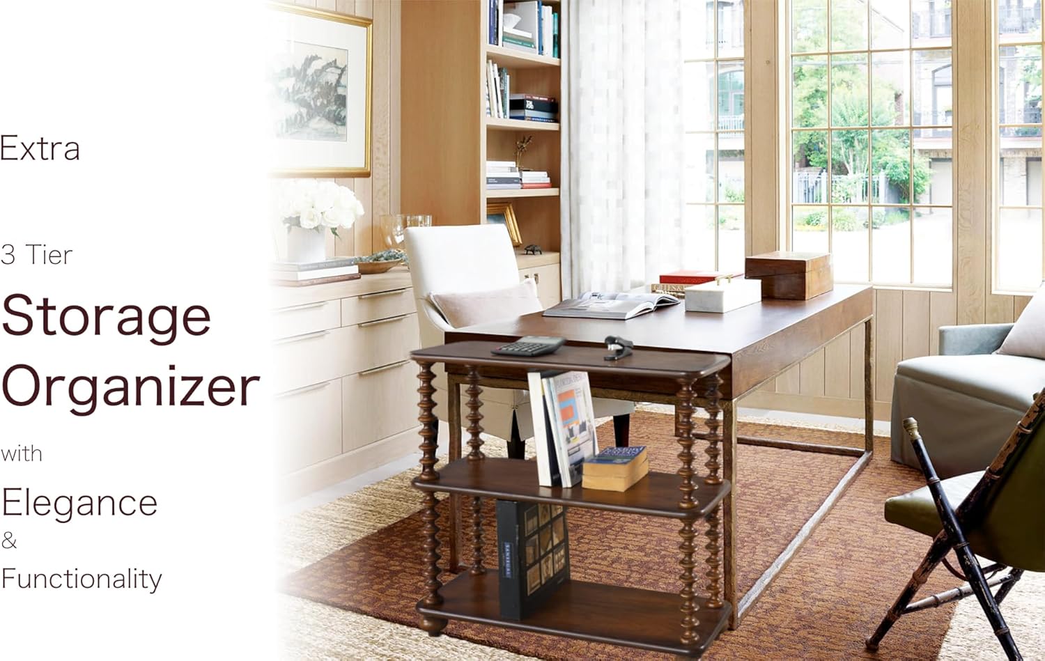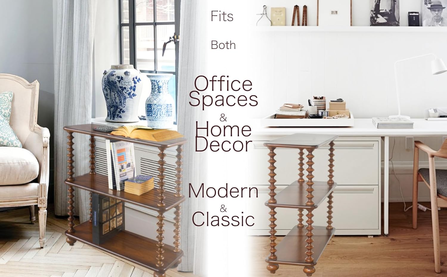 - Smooth And Rich Finish - Crafted from solid wood, this sturdy bookshelf offers durability and a sleek, elegant design. Its smooth and rich finish on natural walnut and carved posts make it a perfect fit for both home office furniture and home decor preferences.
