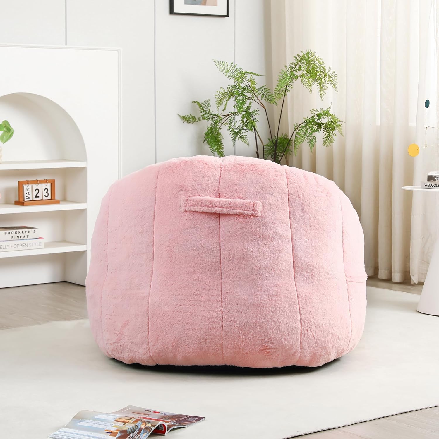 Furniliving Bean Bag Chair, Giant Bean Bag Chair Stuffed Floor Sofa for Adults Comfy Bean Bag Sofa with Back Support, Oversized Bean Bag Couch for Living Room Bedroom Dorm Office, Faux Leather, Pink