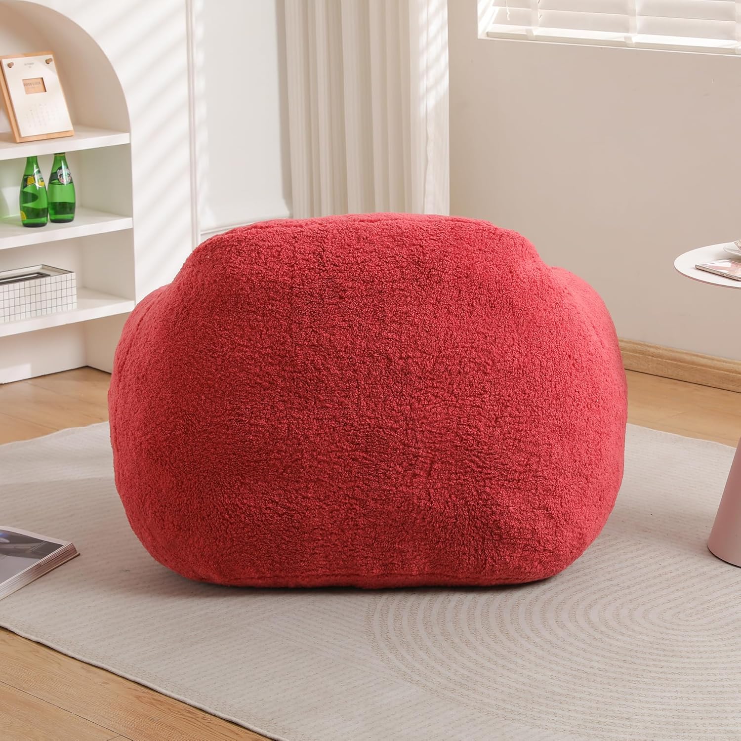 Furniliving Bean Bag Chair, Oversized Bean Bag Couch for Adults Comfy Bean Bag Sofa with Back Support, Giant Bean Bag Chair Stuffed Floor Sofa for Living Room Bedroom Dorm Office, Teddy, Rose Red