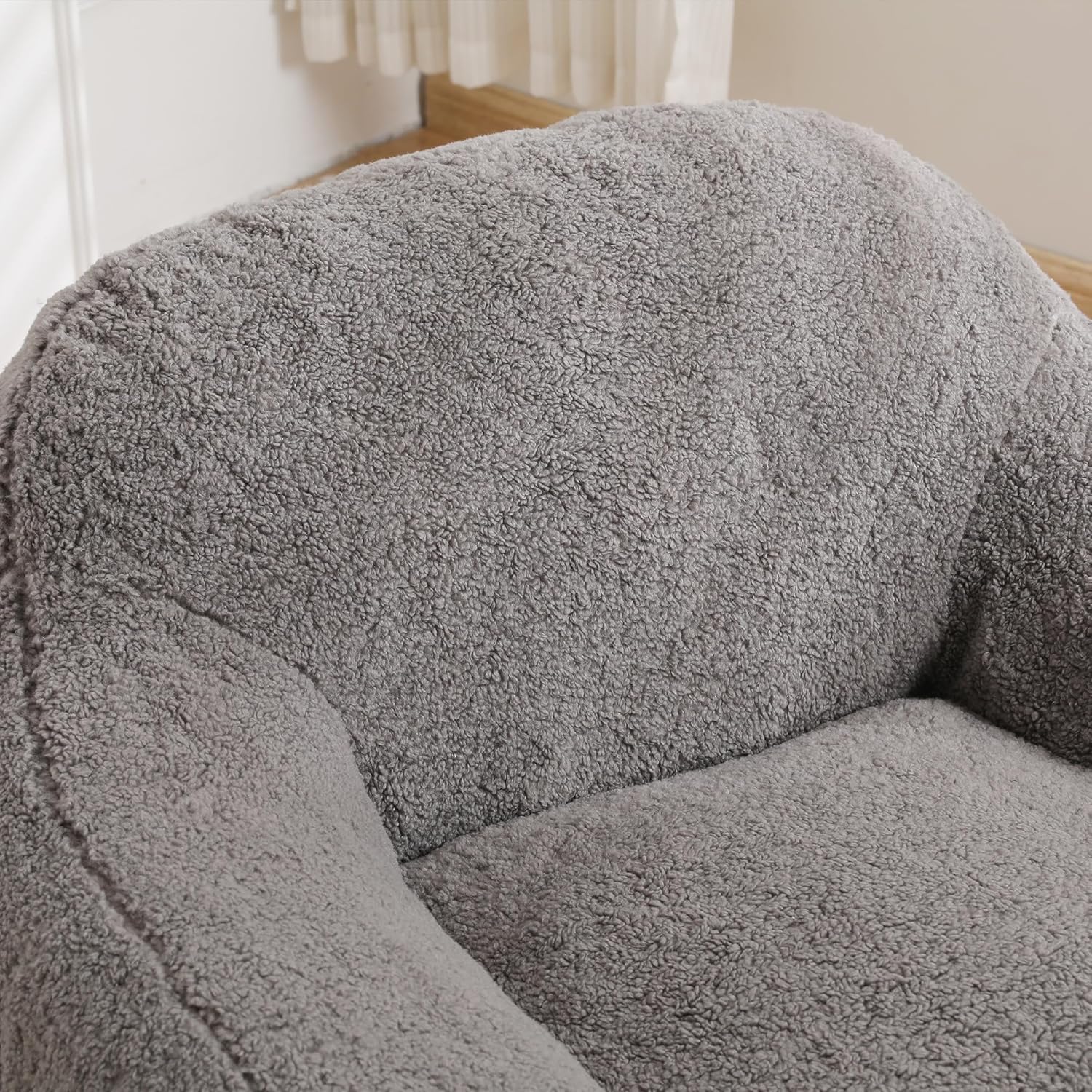 Furniliving Bean Bag Chair, Oversized Bean Bag Couch for Adults Comfy Bean Bag Sofa with Back Support, Giant Bean Bag Chair Stuffed Floor Sofa for Living Room Bedroom Dorm Office, Teddy, Light Grey