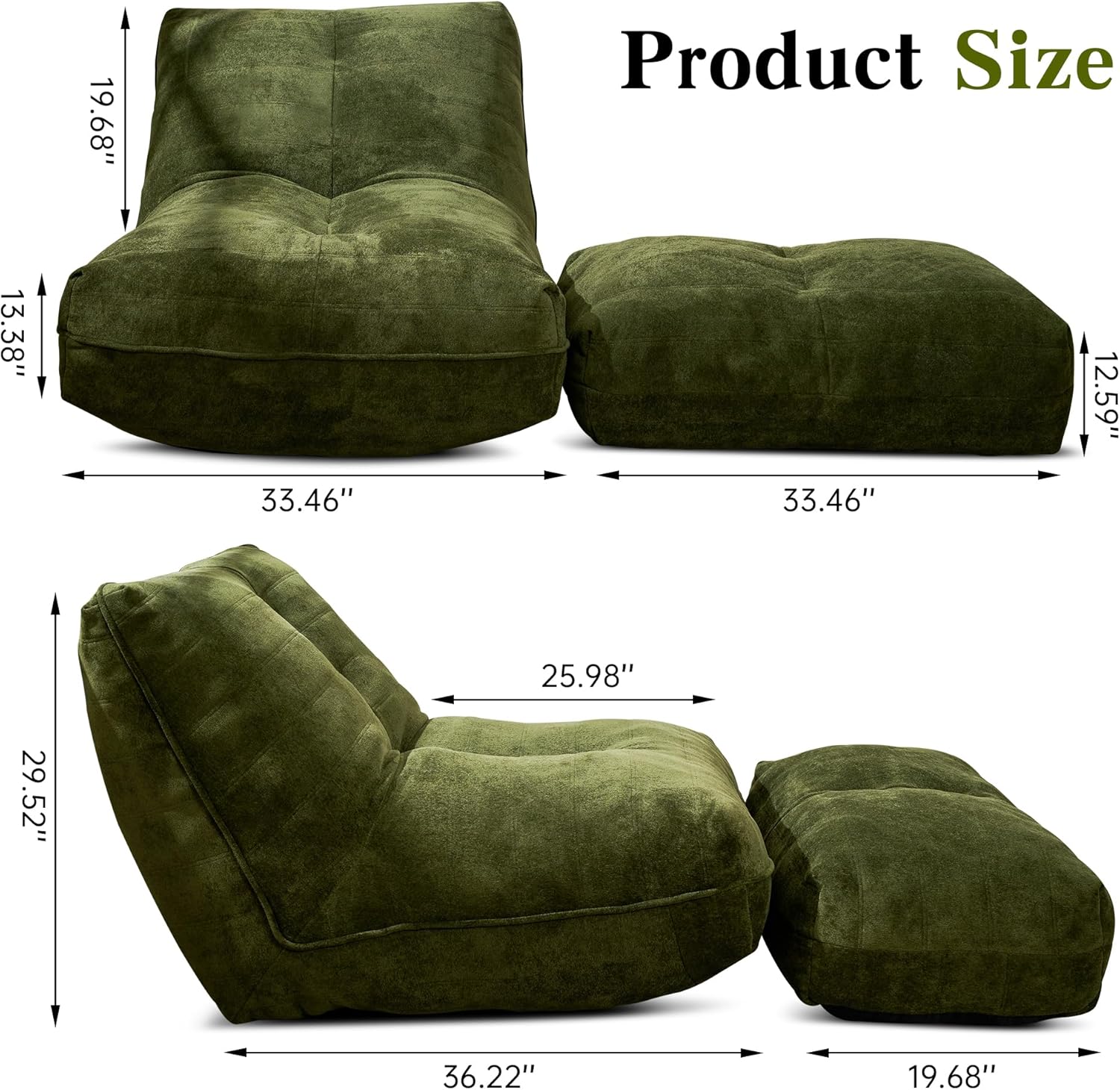 - Included Components : Bean bag chair with Ottoman