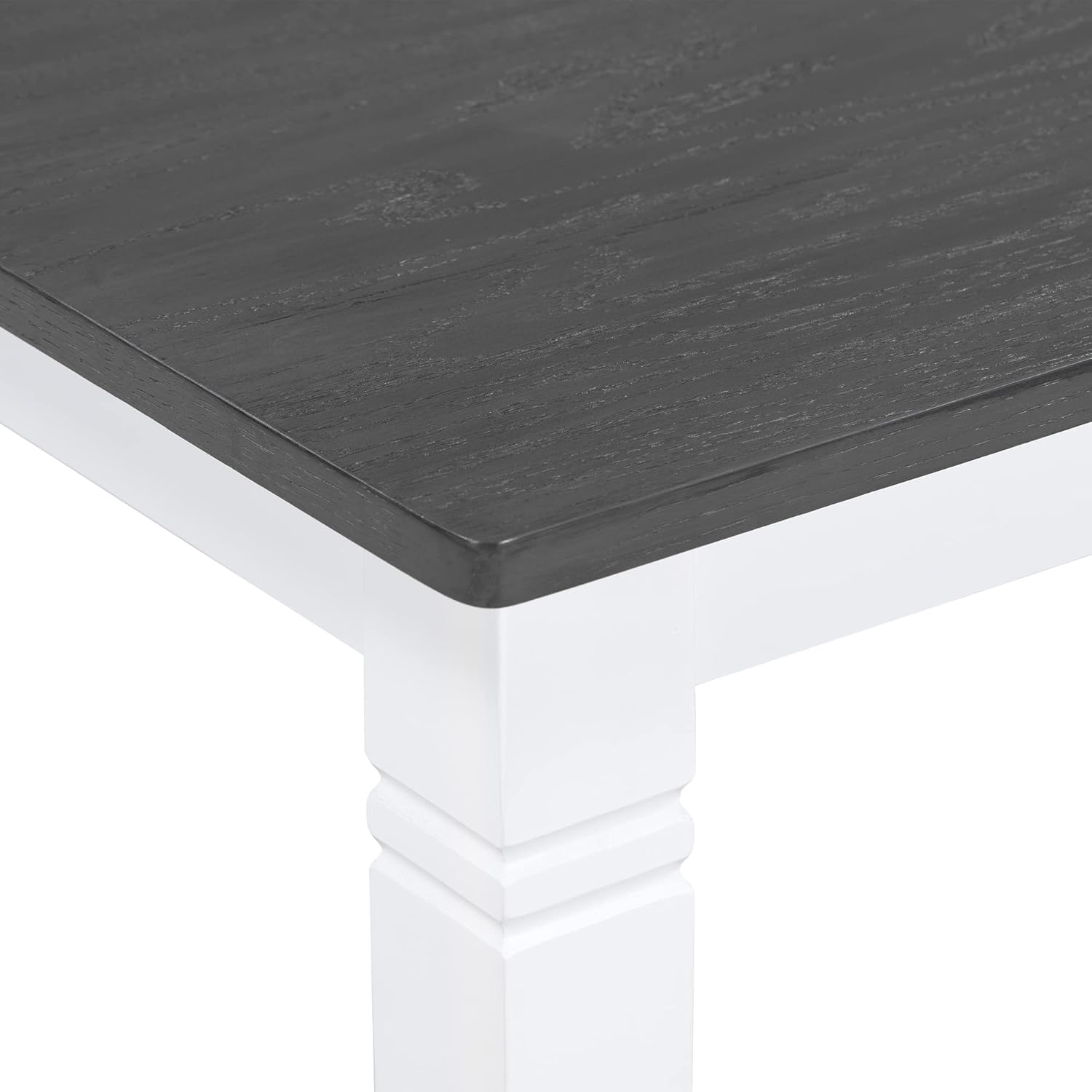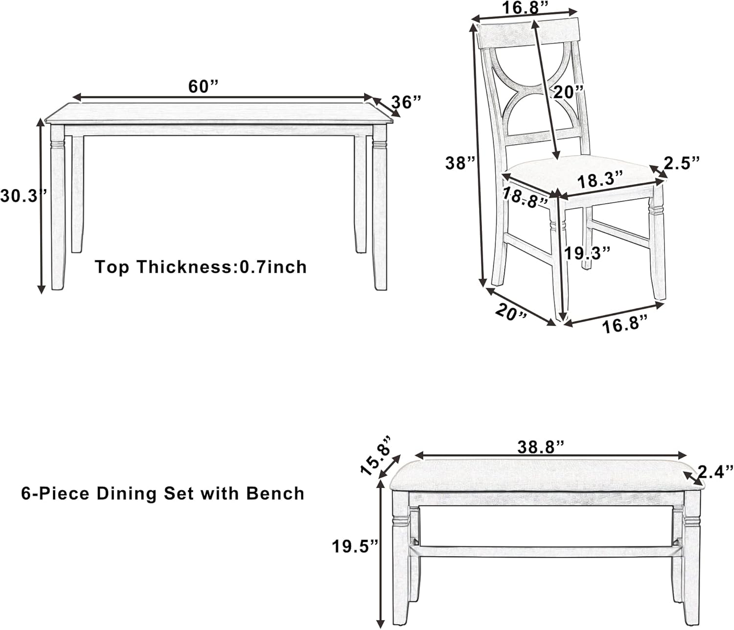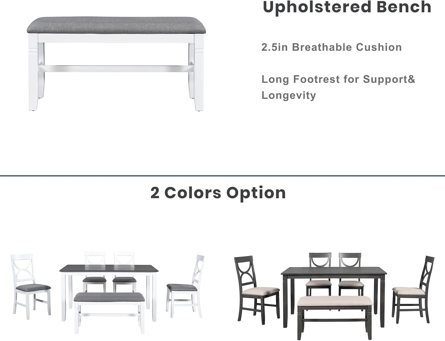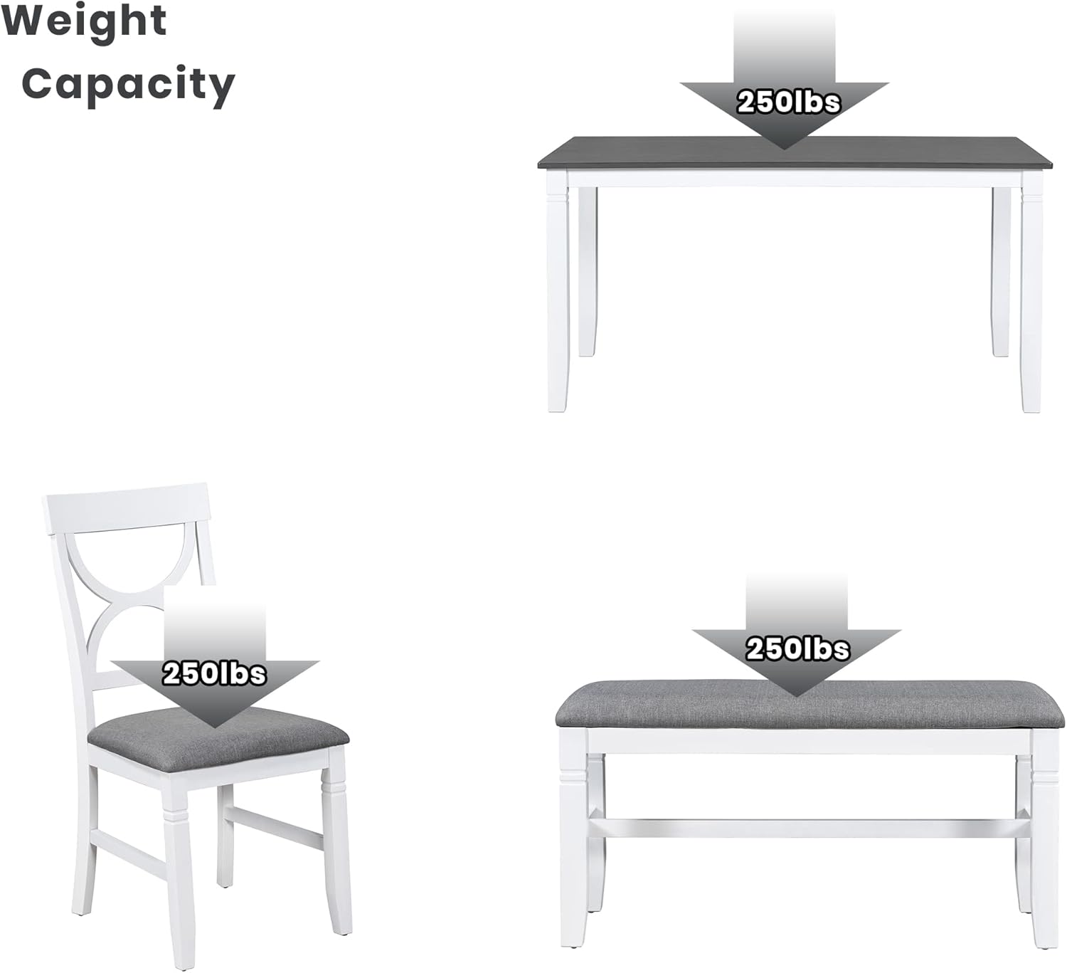Ball & Cast 6 Piece Wood Dining Table Set,Kitchen Table Set with Upholstered Bench and 4 Dining Chairs,Farmhouse Living Room Furniture w/Carved Legs & Round Backrest,for Dining Room,Gray+White