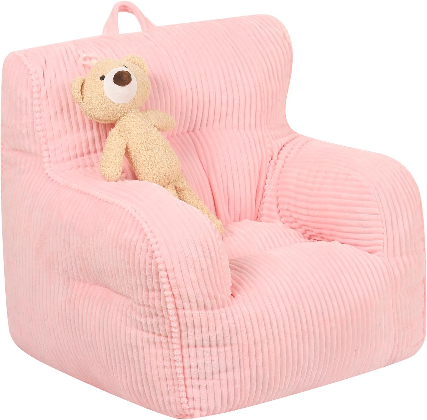 Kids Bean Bag Chair with a Plush Bear, Comfy Toddler Chair for Boys and Girls, Pink