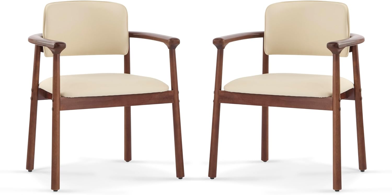 Merax Rubber Wood Dining Chairs Set of 2, Comfortable PU Foam Seat Armchairs for Living Room Dining Room, Bearing 300 lbs, Dark Walnut Color