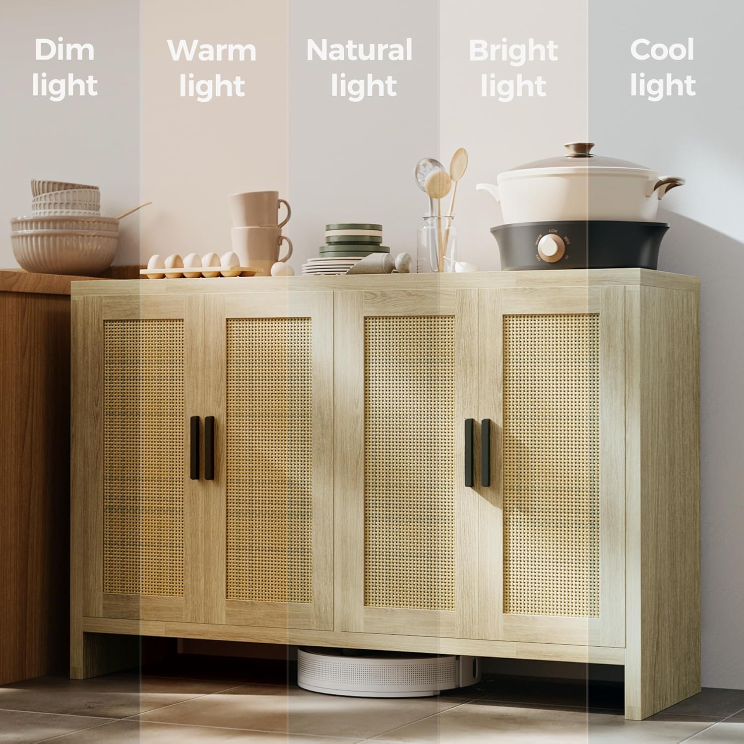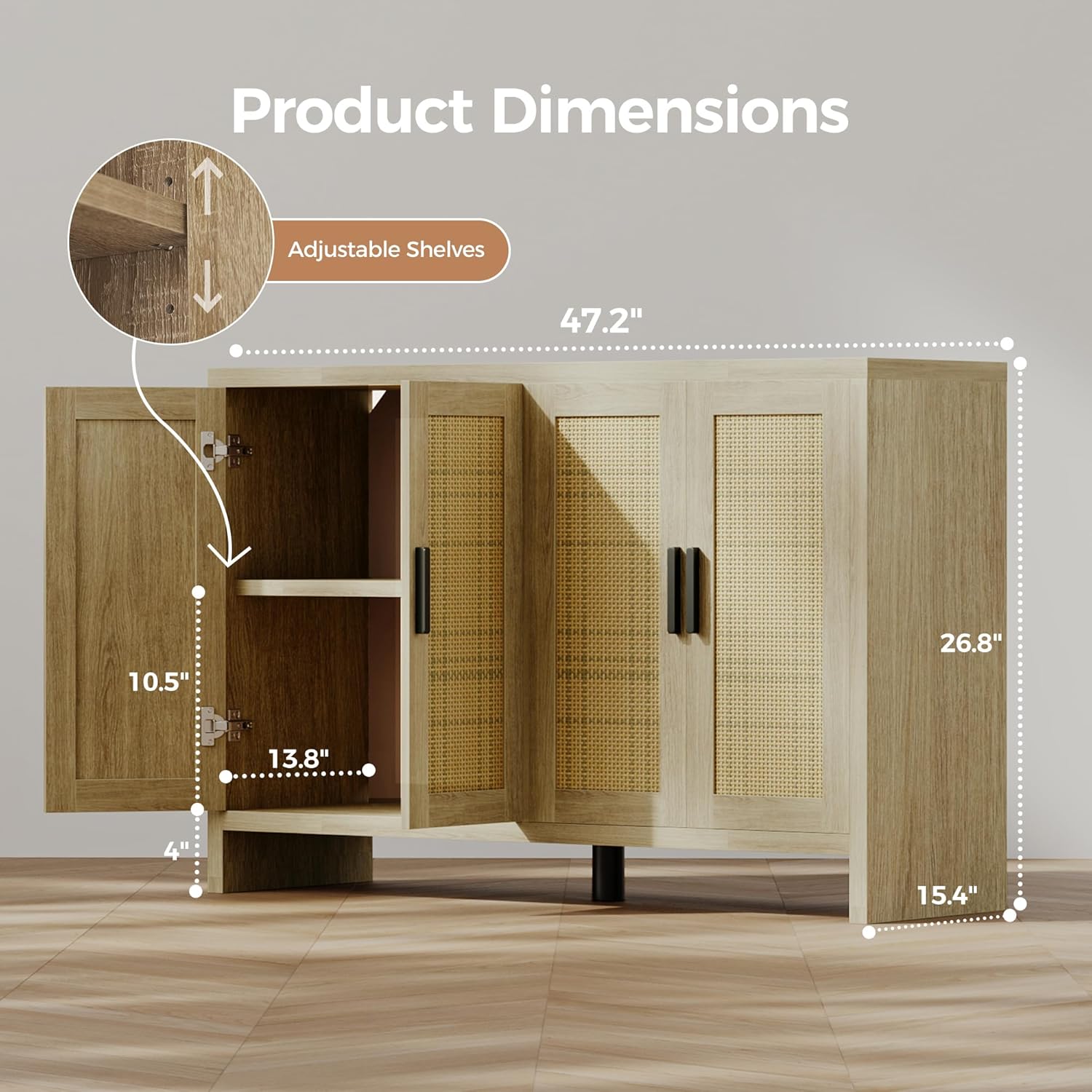 Rattan Buffet Cabinet with Storage, Sideboard with Doors, TV Stand, Farmhouse Side Board Coffee Bar, Modern Wood Storage Cabinets for Livingroom, Kitchen and Dining Room (Oak)